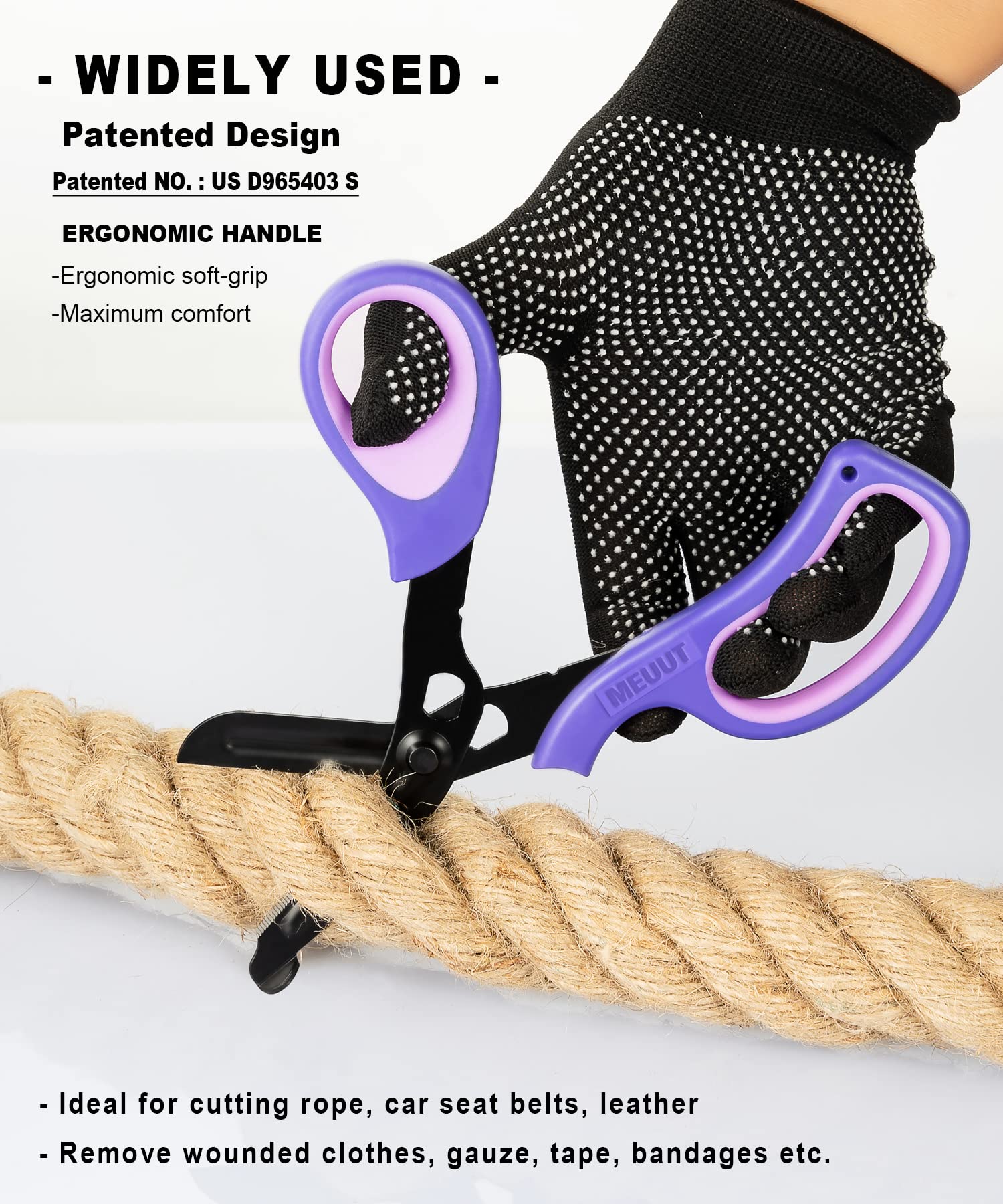 【ALL-PURPOSE SCISSOR】: Cut anything safely and efficiently with these sharp scissors. Ideal for cutting ribbon, burlap, rope, car seat belts, leather, remove wounded clothes, gauze, tape, bandages etc. Perfect for outdoors, first aid, nurse, doctor, firefighter, gardening, household.