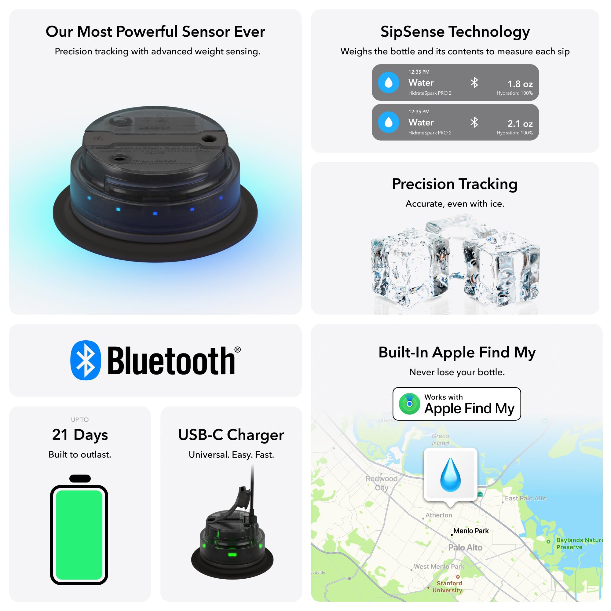 AUTOMATIC HYDRATION TRACKING – SipSense powered sensor uses advanced weight sensing to track every sip and syncs to the app to count toward your daily hydration goal. USB-C rechargeable with up to 21 days of battery life per charge.