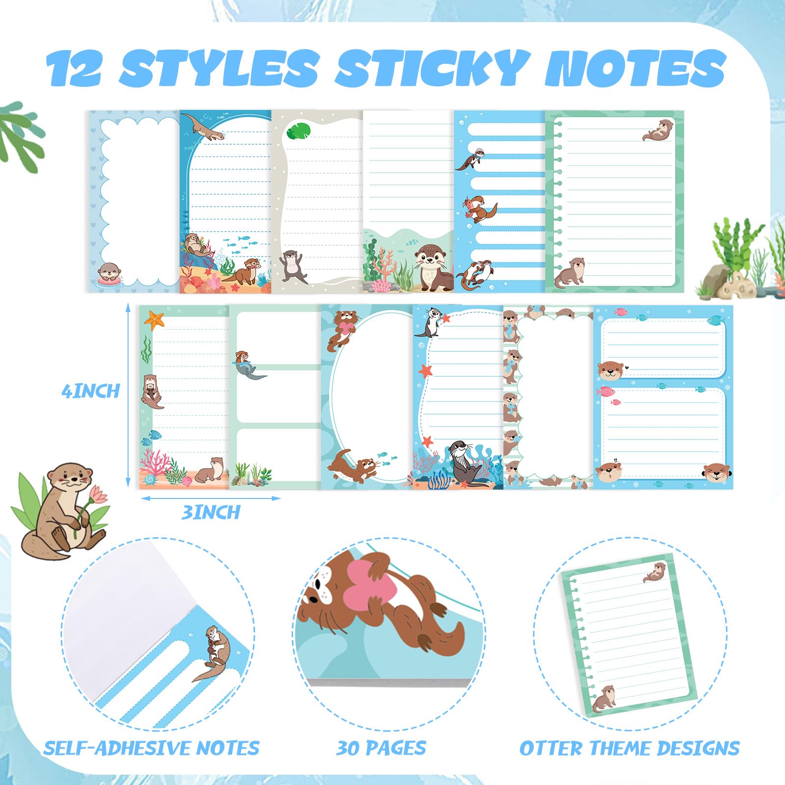Sufficient Quantity: you will receive 12 pieces of otter themed sticky notes, packaged with 30 pages each, for a total of 360 sheets; The dimensions are a handy 3x4 inches /7.6x10 cm, enough quantity and rich design to meet your various needs and replacements