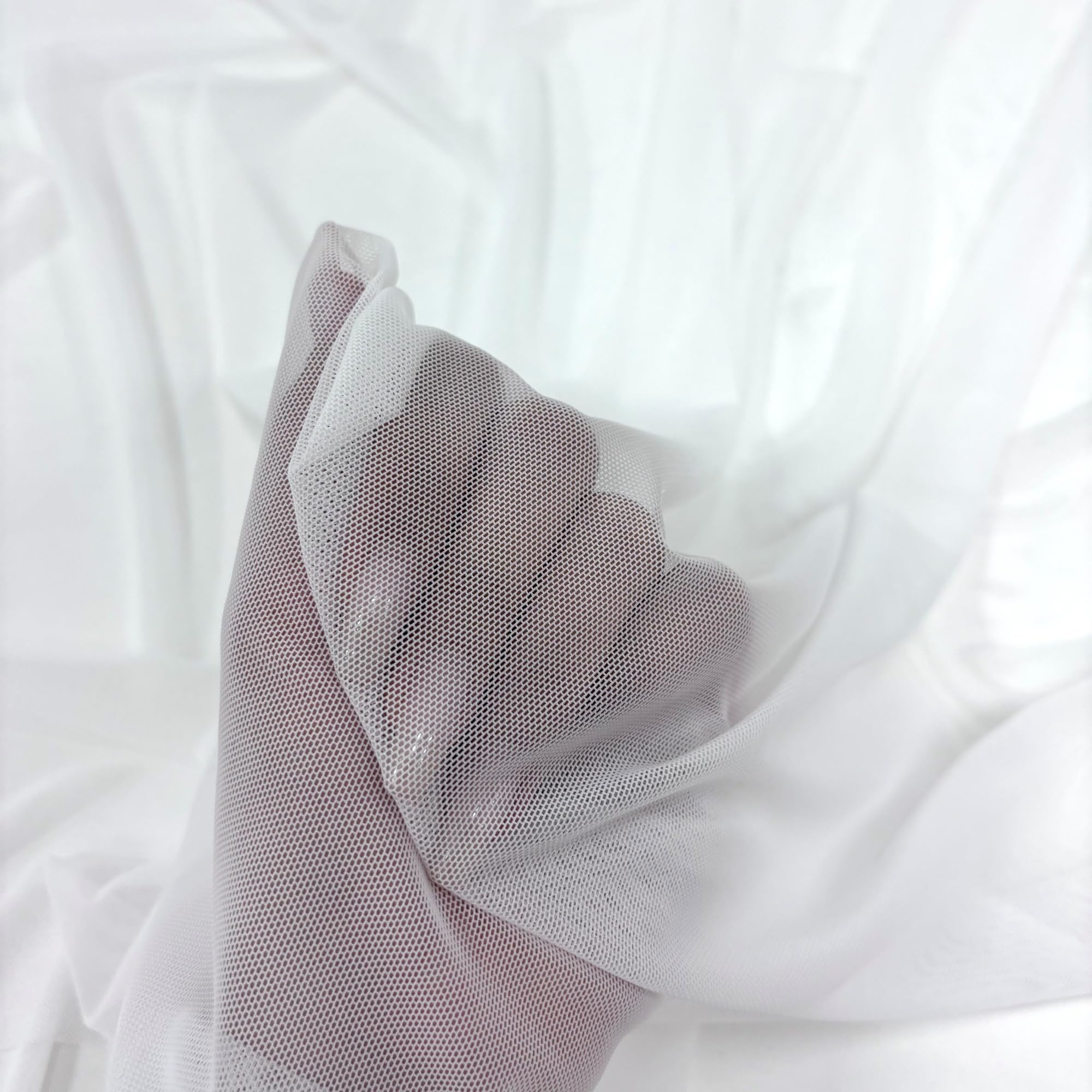 SHEER MESH FABRIC – Our 4-way stretch power mesh fabric offers exceptional flexibility and recovery, making it perfect for a variety of projects. From athletic wear to wedding dresses, it provides unmatched comfort and performance.
