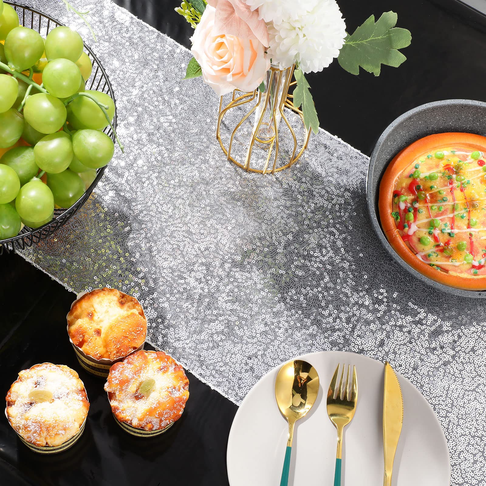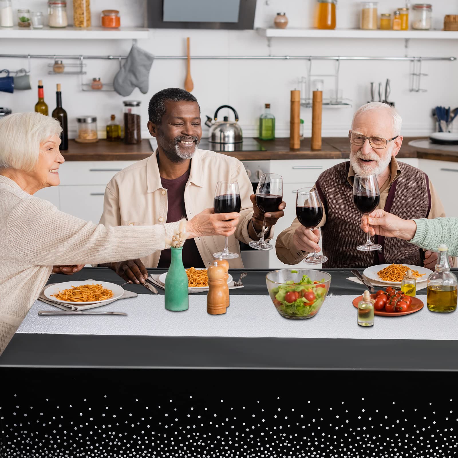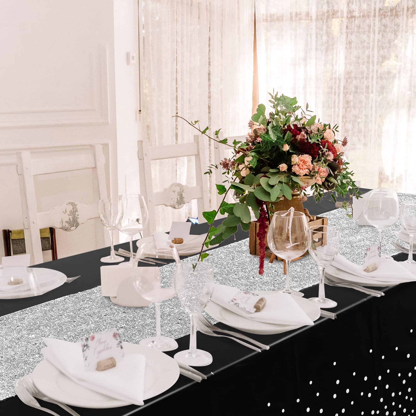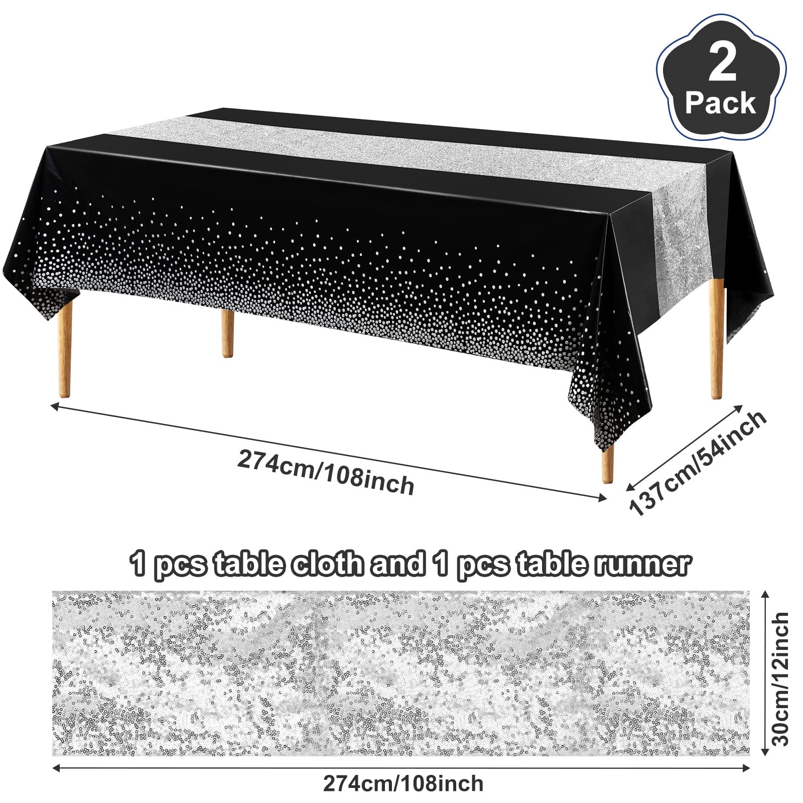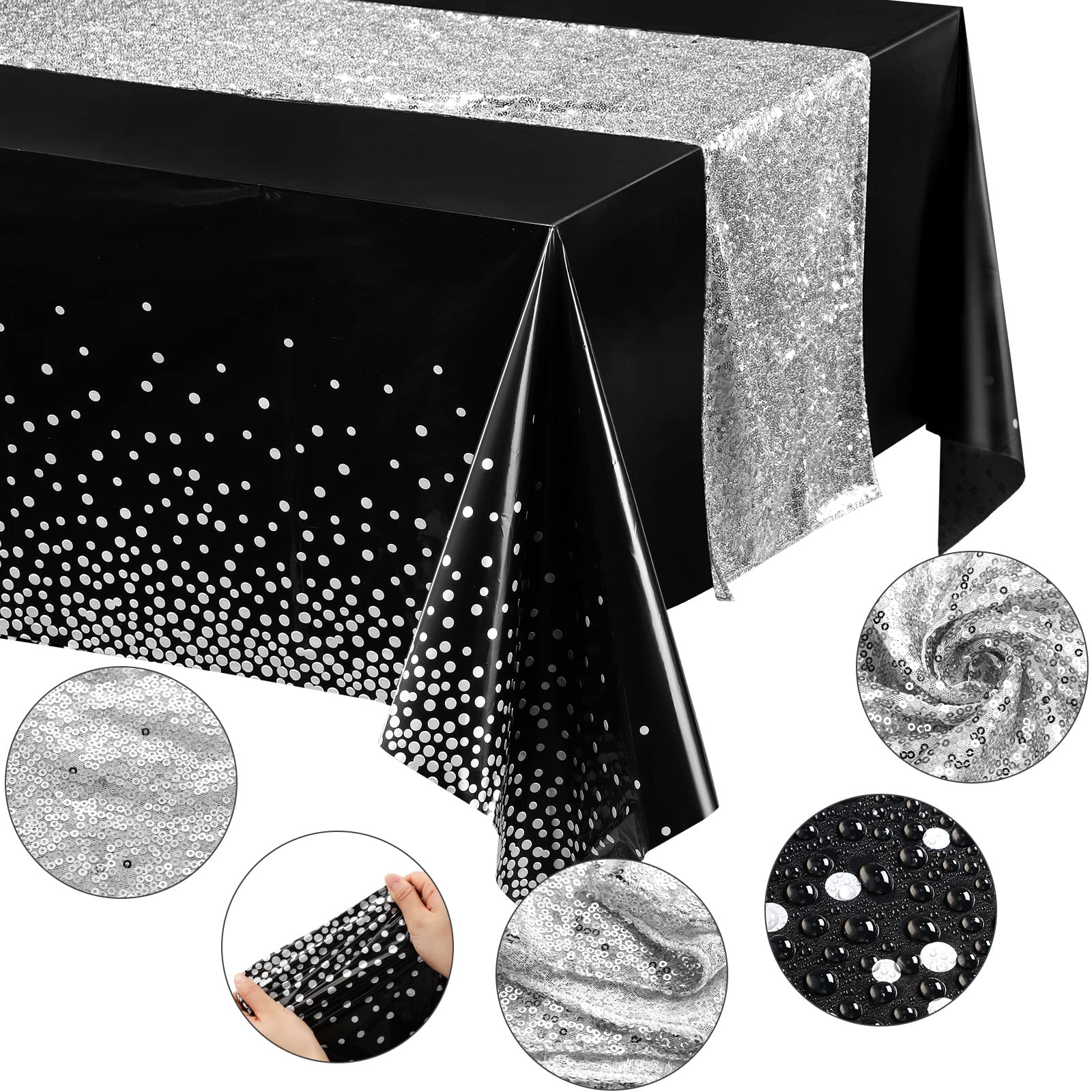 Shiny design: the black and sliver rectangle table cloth is designed with a black background and printed with foil polka dot, and the other confetti table runner adopts glittery sequin, delicate and attractive, which can add more charms to your dinner table
