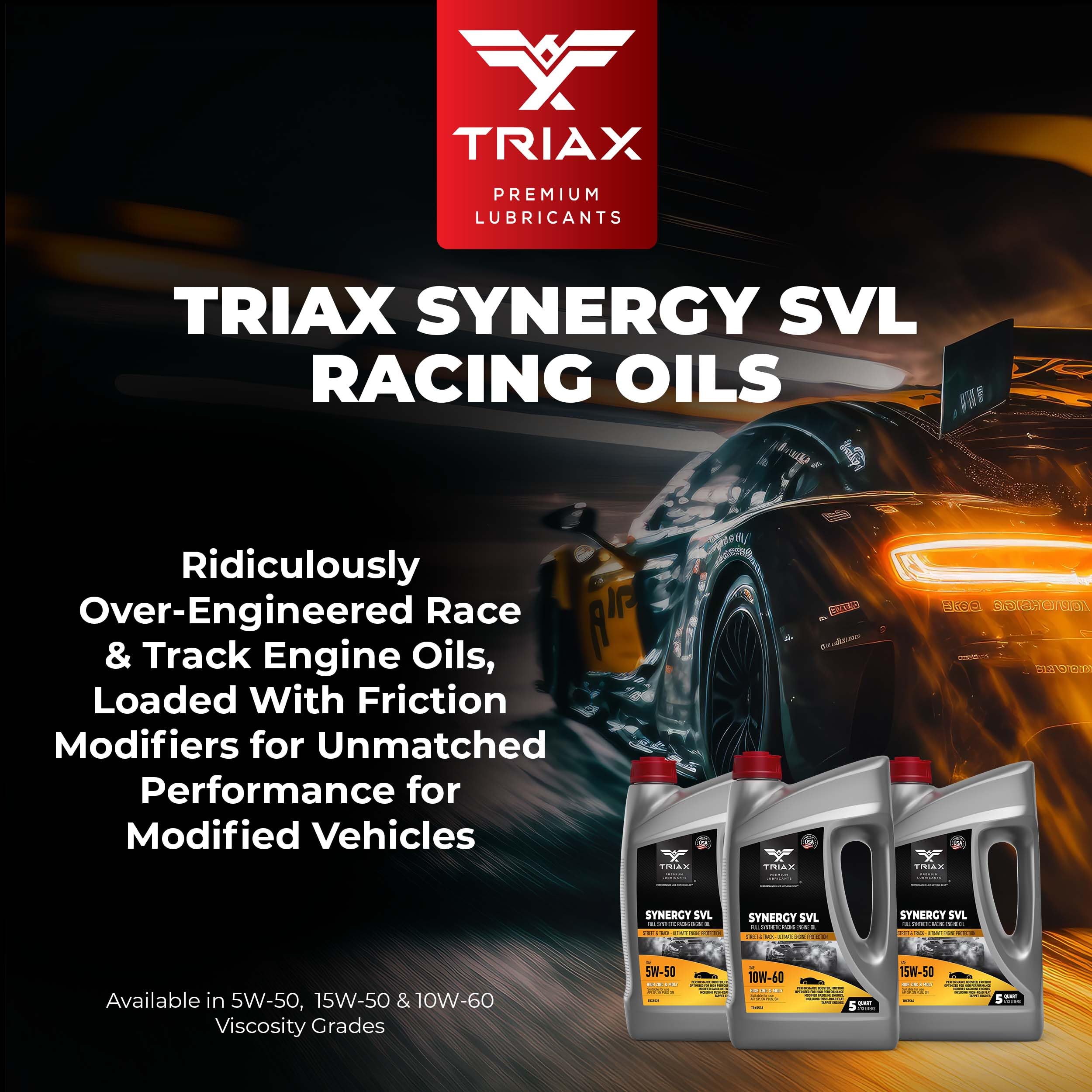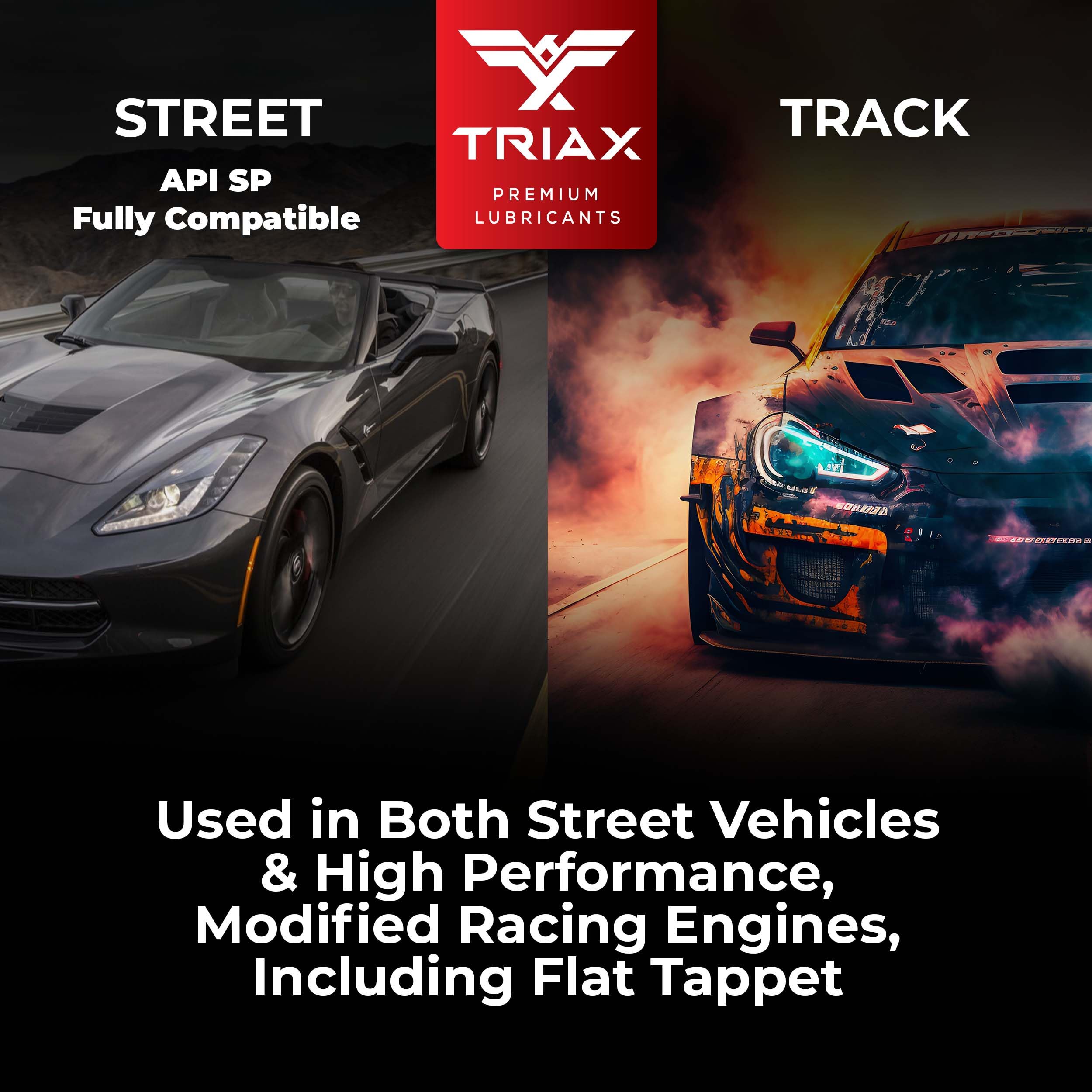 Track Racing: For single turbo / twin turbo-chargers, superchargers, high power, high output, modified racing engines with high horsepower and torque output, including flat tappet