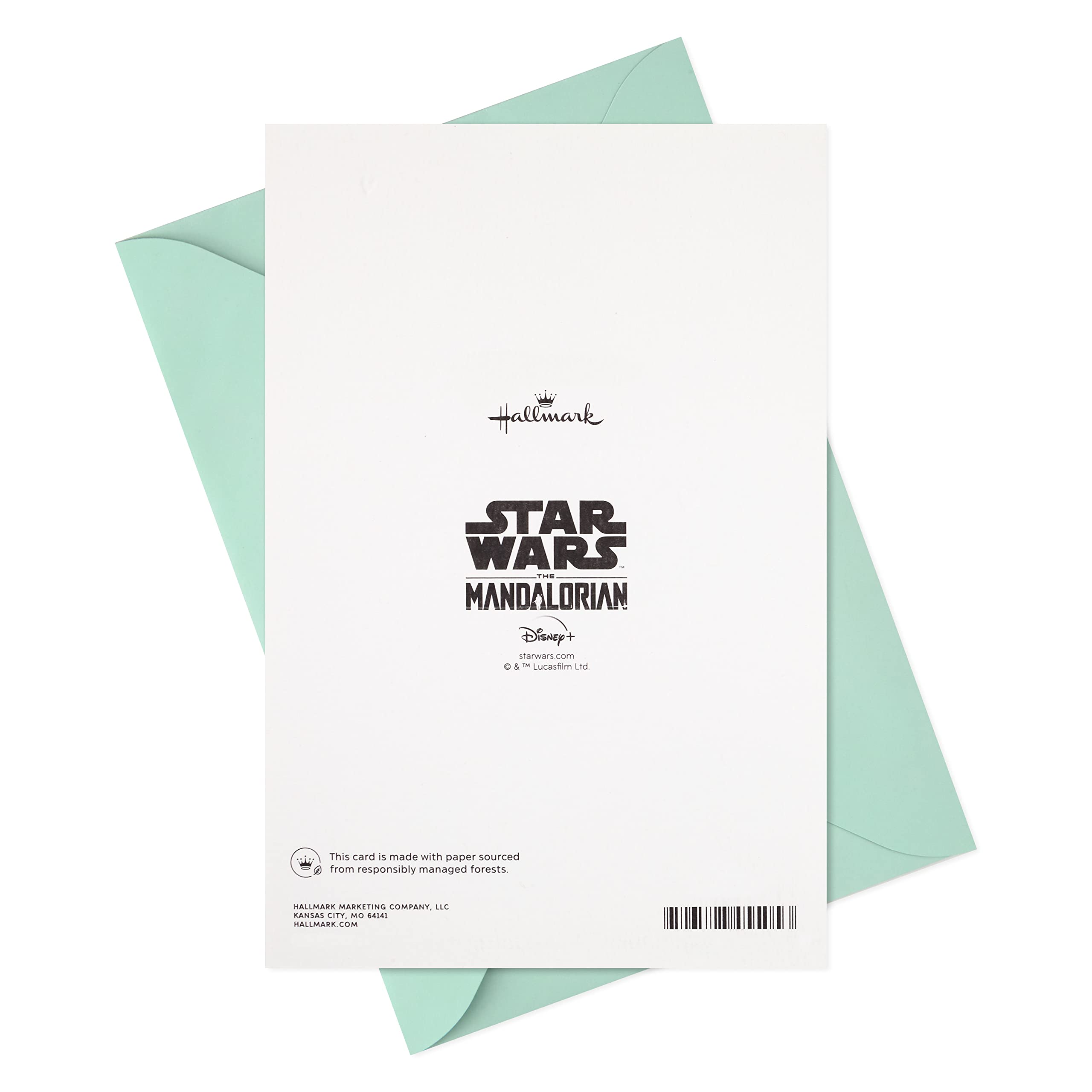 Wish family and friends well as they welcome a new addition to their family with a sweet new baby card. Adorable card features a fun Baby Yoda design and a cheerful sentiment inside that's sure to make the new parents feel extra special. The perfect gift card or money holder or accompaniment to a baby shower gift. The Hallmark brand is widely recognized as the very best for greeting cards, gift wrap, and more. For more than 100 years, Hallmark has been helping its customers make everyday moments more beautiful and celebrations more joyful.
