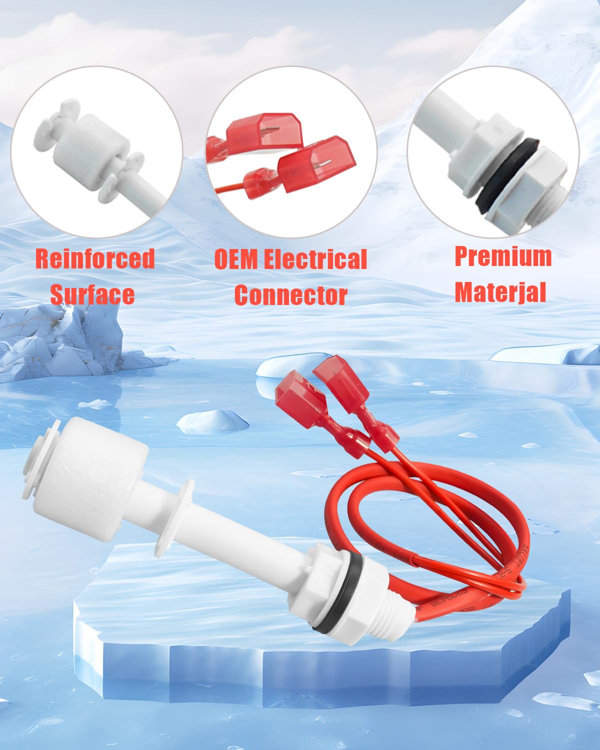 Compatible Models: Float switch fit for Manitowoc ice machine UD0140A UD0140AE UY0310W UD0140W UD0140WE UD0190A UD0190AE UD0240A UD0240AE UD0240W UD0240WE, Replace 040002396, see description below for details