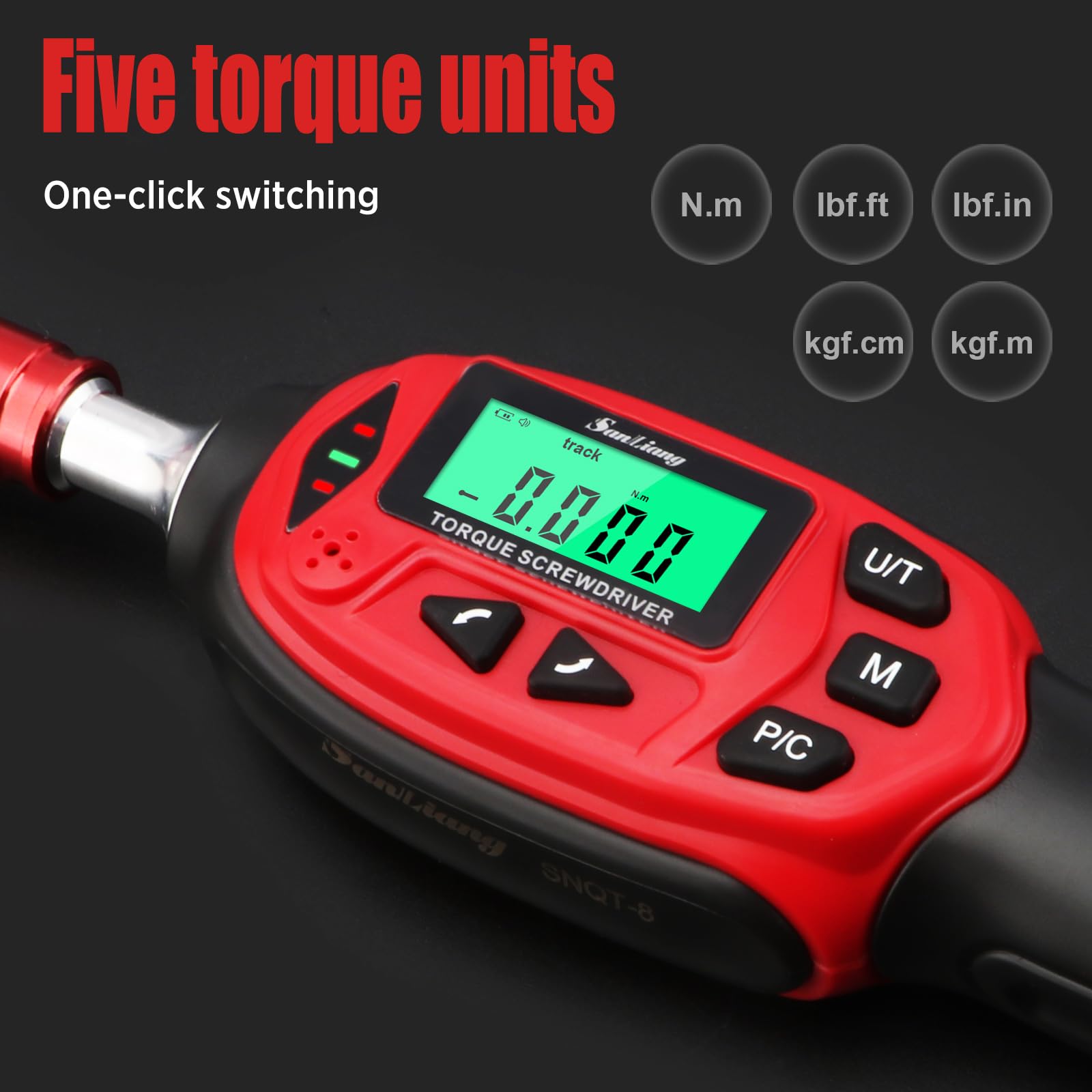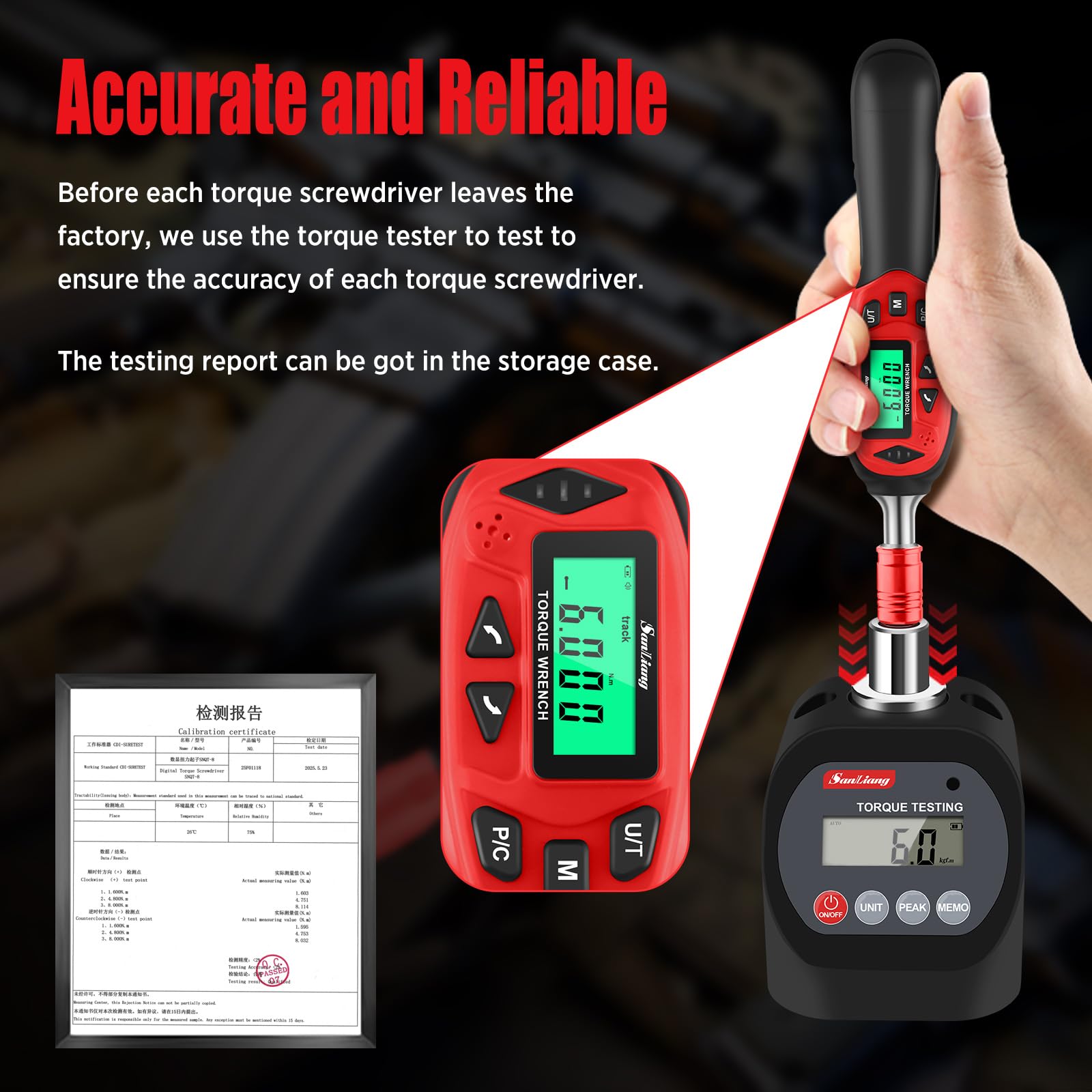【Accurate and Reliable】Sanliang 1/4'' digital torque screwdriver features digital display with ±2% accuracy with a range of 0.71-70.8 In-lbs/0.08-8 Nm. Before each torque screwdriver leaves the factory, we test the accuracy of each torque screwdriver by torque tester. And you can get the accuracy testing report in the storage case. Automatically turn off after 3 minutes of no operation to save battery.