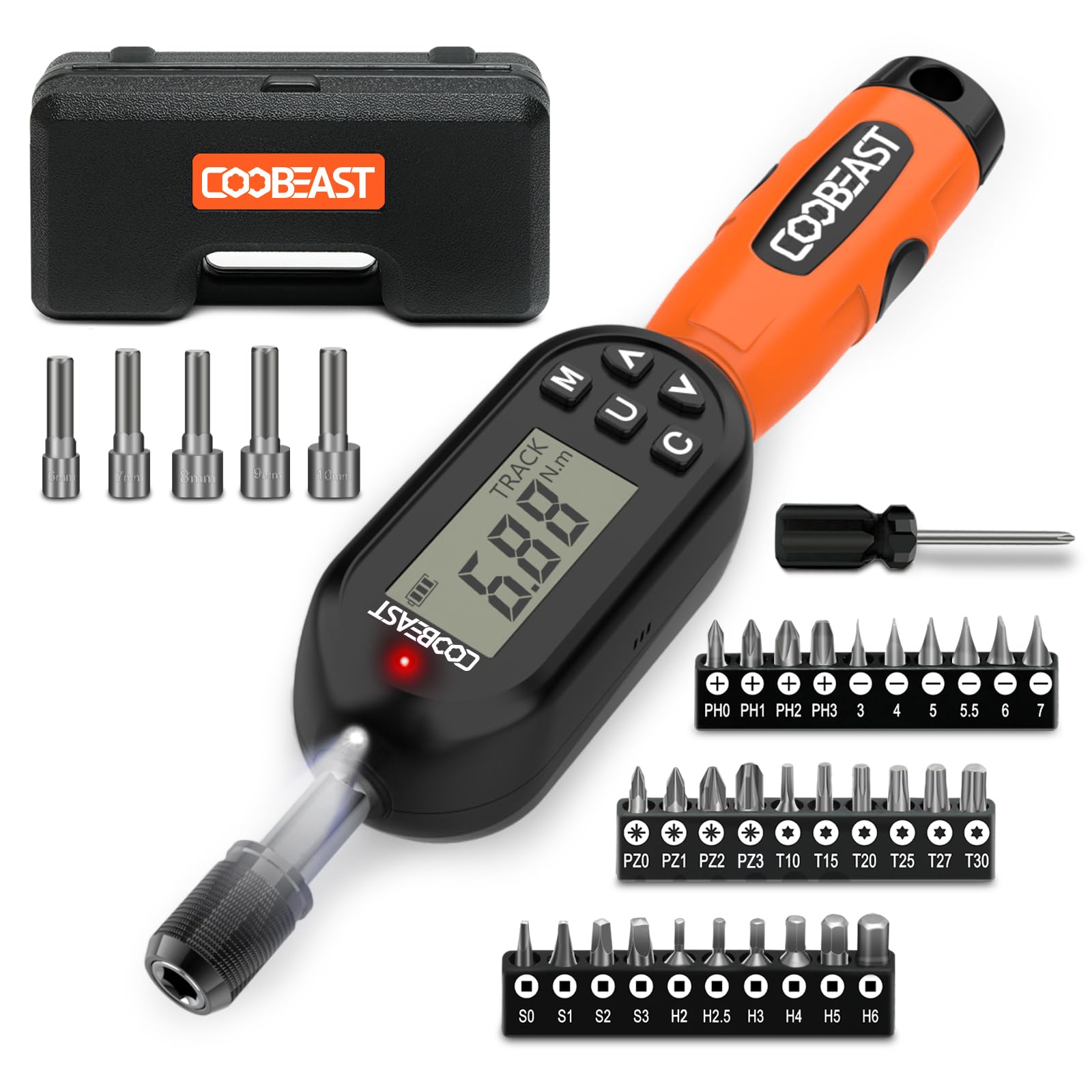 【5 Torque Units & 3 Working Modes】The digital torque screwdriver allows precise torque adjustment in N.m, lbf.ft, lbf.in, kgf.cm and kgf.m. The torque screwdriver set provides TRACK, PEAK and Pre preset three working modes. Press the M key to cycle through the three working modes. Track: follow mode, displays the current torque value; Peak: peak hold mode, displays the maximum torque value; Pre: preset mode, preset the torque value.