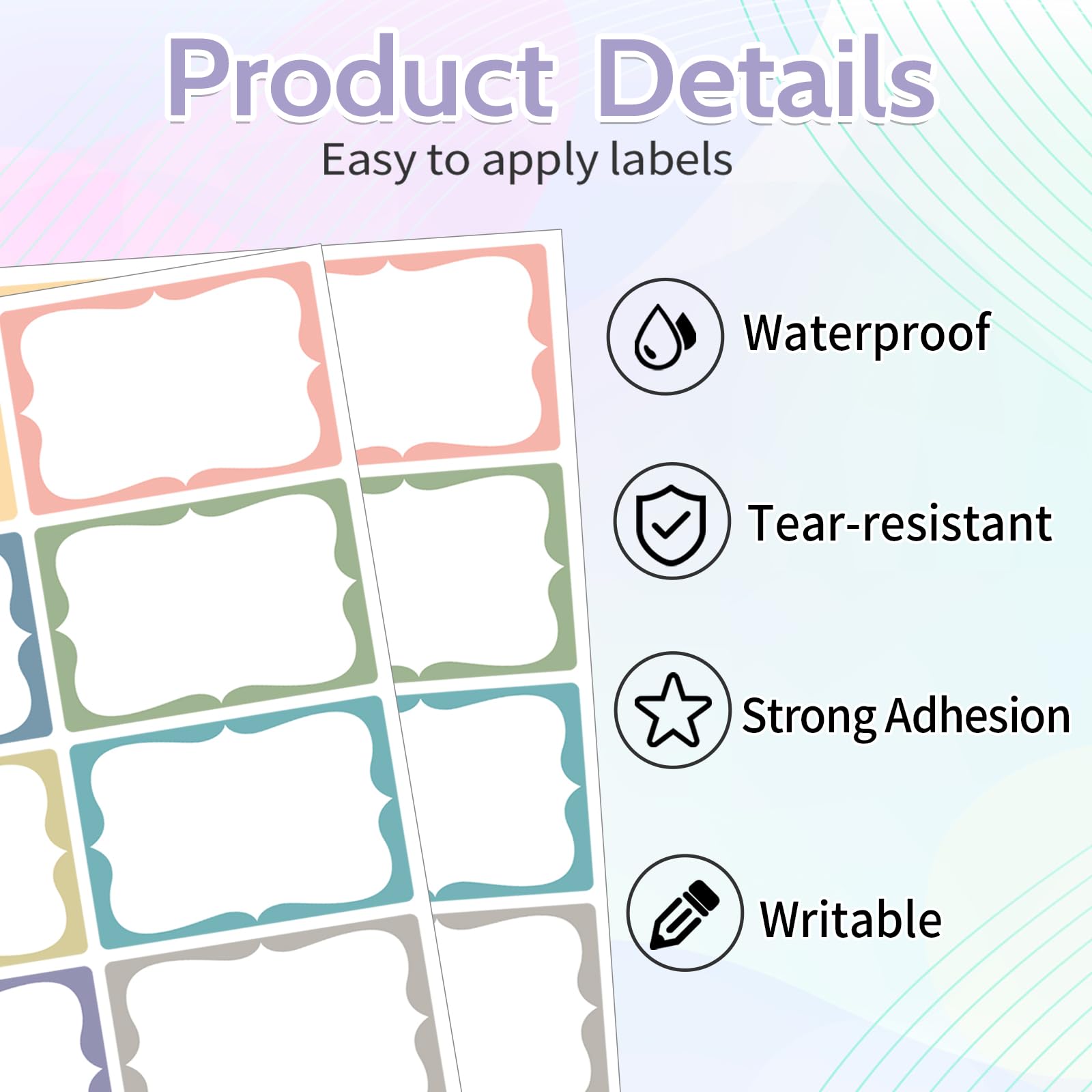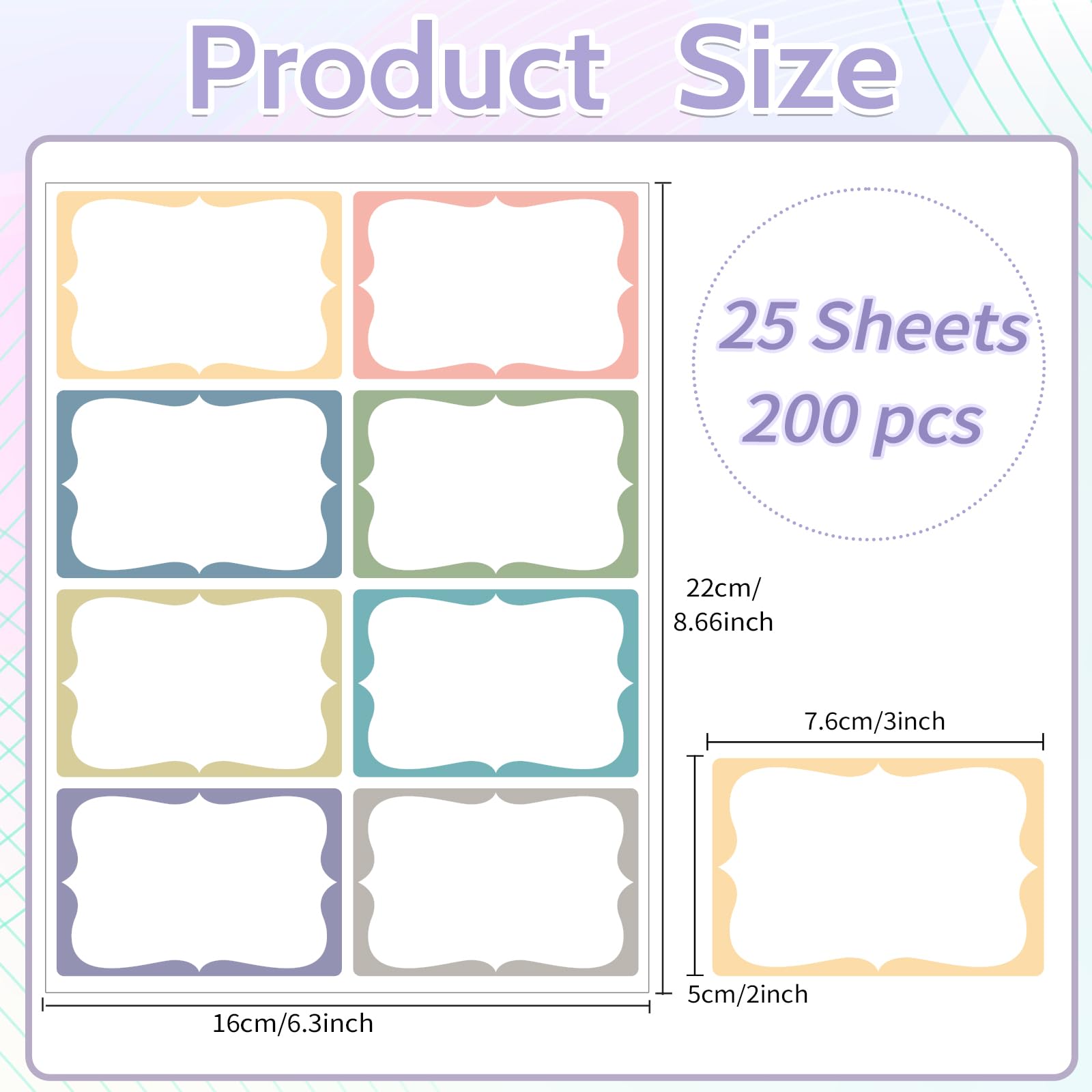 Colored border: The size of the sticker name tag is 3 "X 2", with a set of 200 self-adhesive ordinary nameplates. The name tags come in six colors: red, blue, gold, silver, and gradient, which can better help children recognize, organize, and exercise their sensitivity to colors.