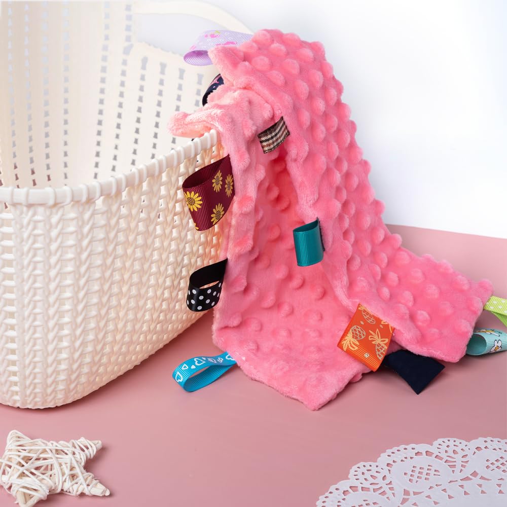 Tag Blankets for Babies - Baby security blanket, sensory stimulate, the tag security blanket features super soft material. The variety of textures will stimulate your curious little one's sensory experience, our tag blanket are super soft and skin friendly for babies.Provide your child with comfort and security.