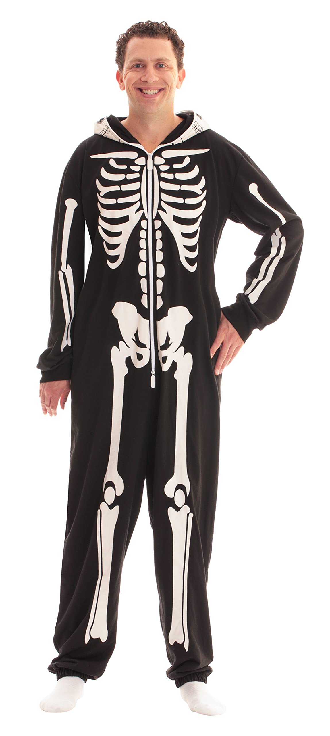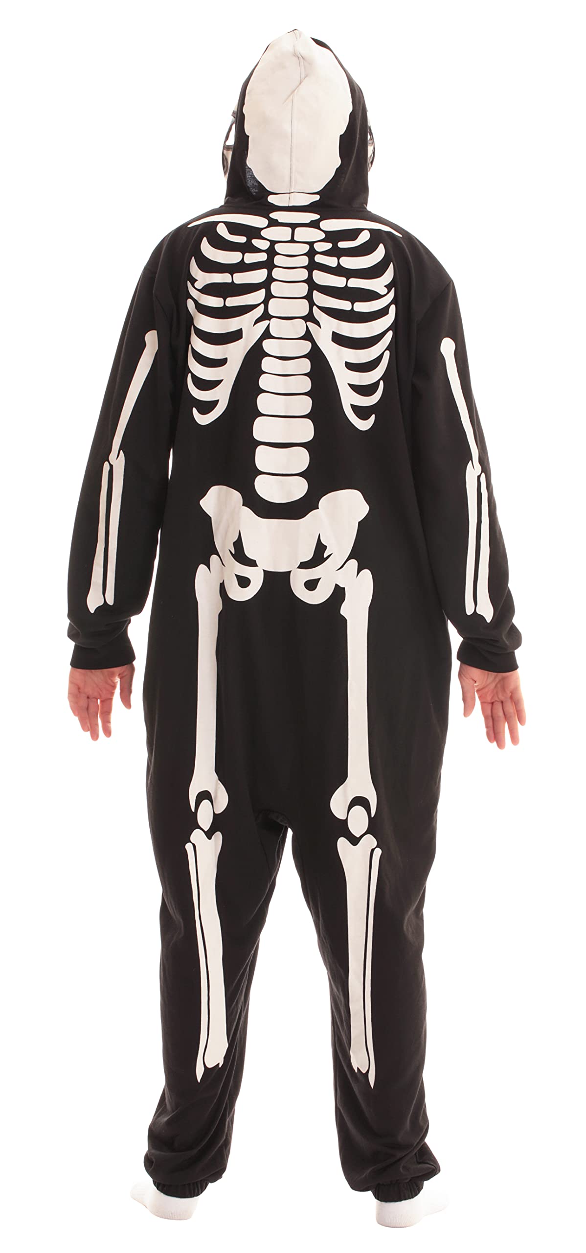 πππ π & ππππ π πππππ π πππππ: This adult onesie pajamas for men is crafted from 100% polyester microfleece that will keep you warm and cozy on cooler nights. This skeleton onesie adult is designed with a full-face zip-up and mesh eye cut-outs that allow clear visibility even when fully zipped. These Halloween costumes adult are comfortable for trick-or-treating, lounging, or Halloween parties.