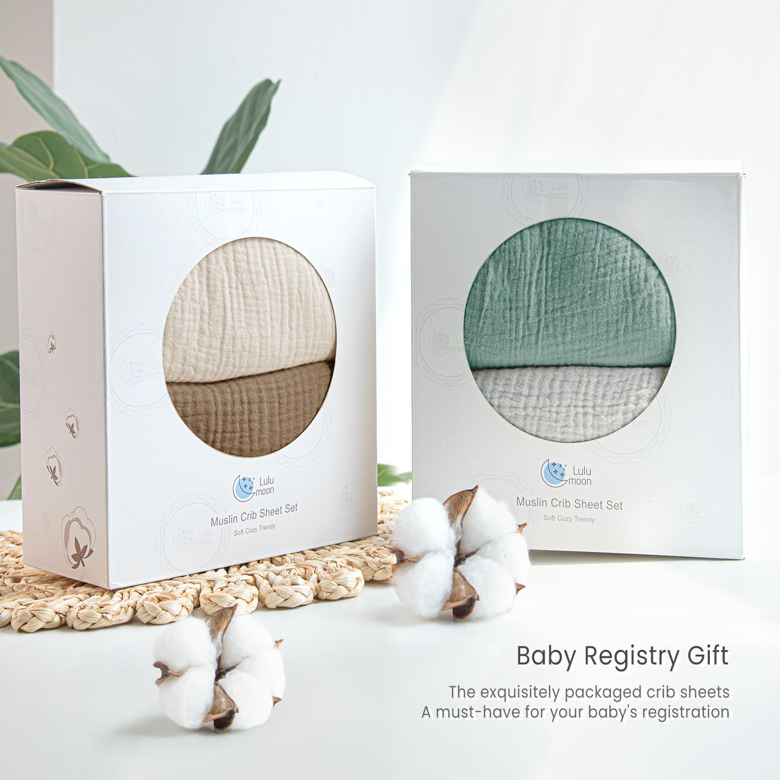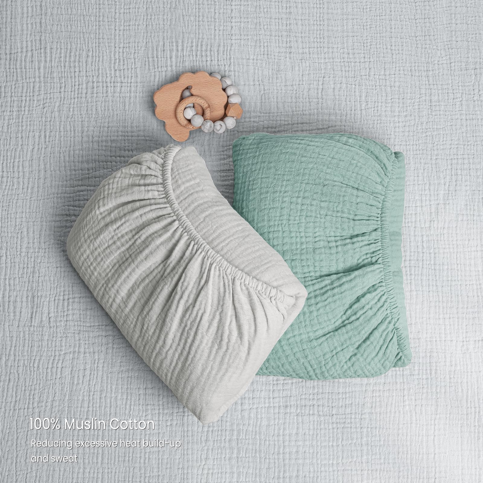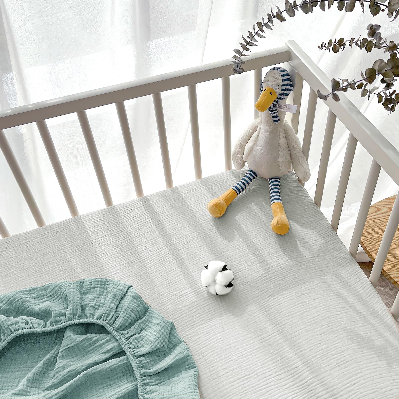 SOFT AND COMFORTABLE - The crib sheets is made of 100% muslin cotton, super soft, comfortable, and won't irritate your baby's delicate skin. Lightweight, breathable muslin crib sheets stay cool even in warm weather.