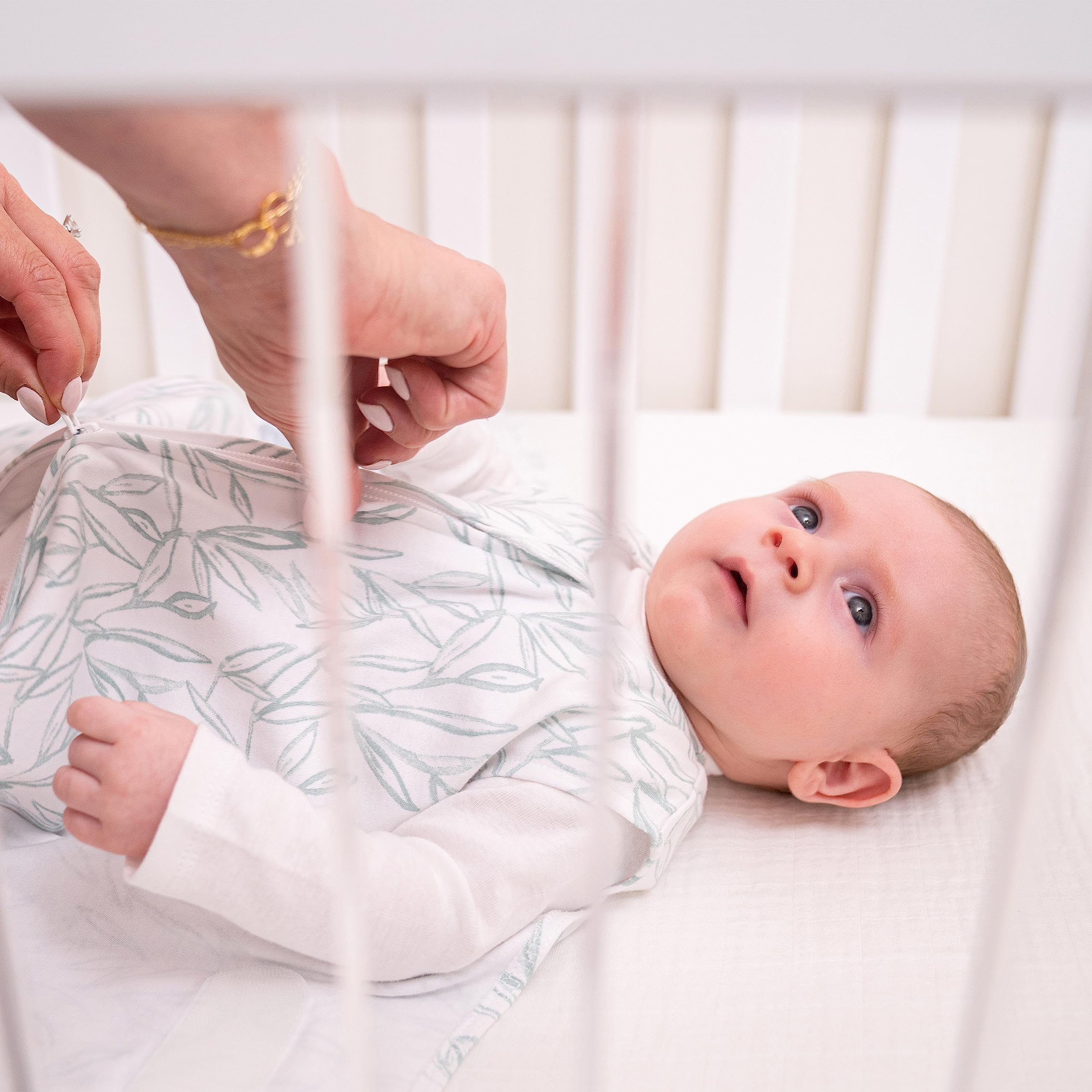 CONVENIENT DIAPER DESIGN An inverted zipper opens from the bottom, allowing easy diaper changes without disturbing your baby’s swaddle. Sleeveless design minimizes overheating risk, while snug arm and neck openings ensure a secure fit.