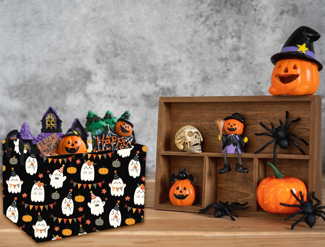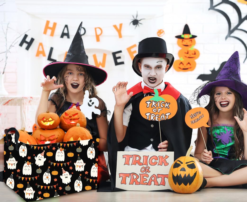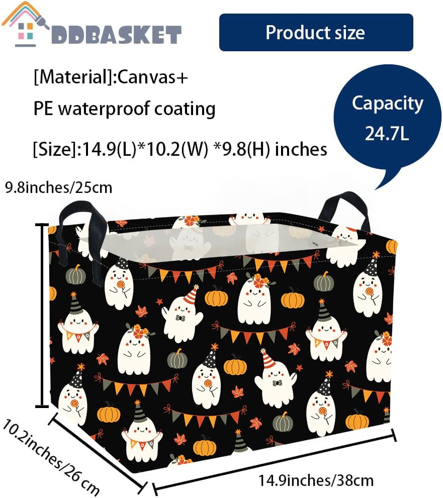 Material:Our Halloween baskets are made of canvas fabric+inside is lined with waterproof PE coating, lightweight and simple for carrying,reusable, not easy to break down or fade.It can be wiped clean with a damp cloth or with a washing machine.
