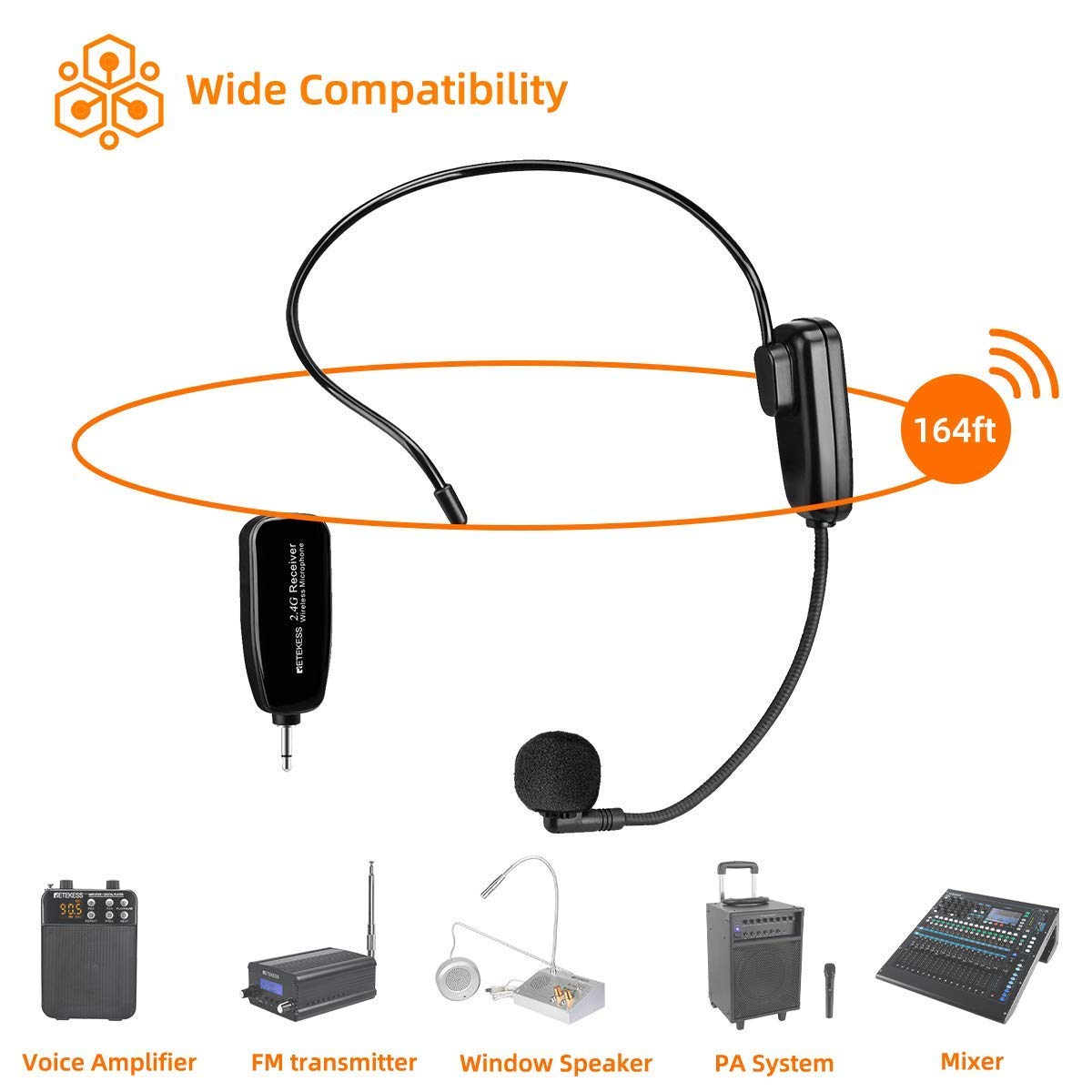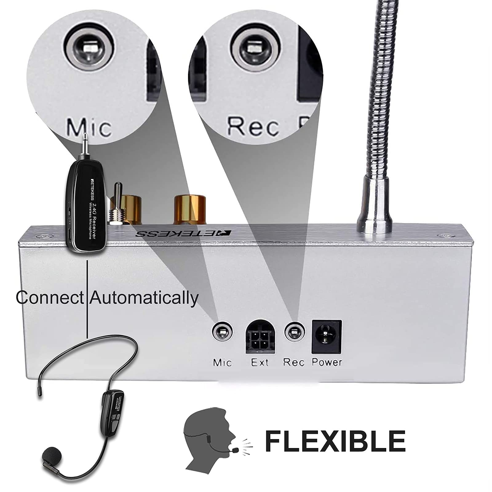 Enjoy wireless freedom; the Mic jack can use TT123 wireless microphone to achieve freedom of movement within 164ft range; connect automatically within 3.2ft