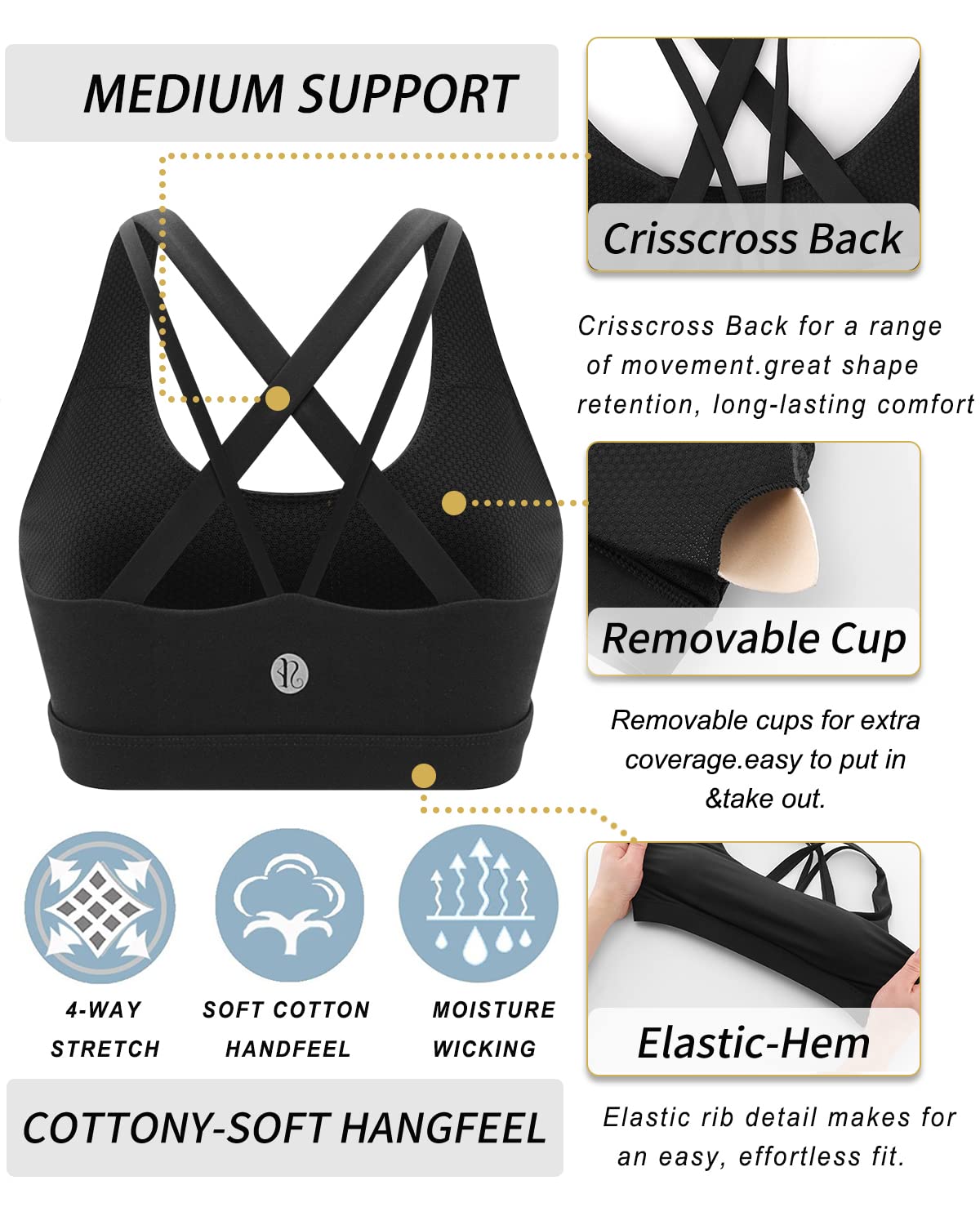 WHAT CAN WE OFFER YOU:Moisture-wicking Technology Metial Which Mean that You Can Enjoy Keeping Your Body Cool & Dry.Super Soft Elastic Band for Comfort & Movement Which Will Allow You Can Enjoy Sinking into Your Practice without Sacrificing Comfort. Built for high impact sports bra with sewn in pads so You Will Get Staying Fit & Focused.We Wear-tested by Our In-house Team for the Perfect Fit,Goodbye Old Bra!!
