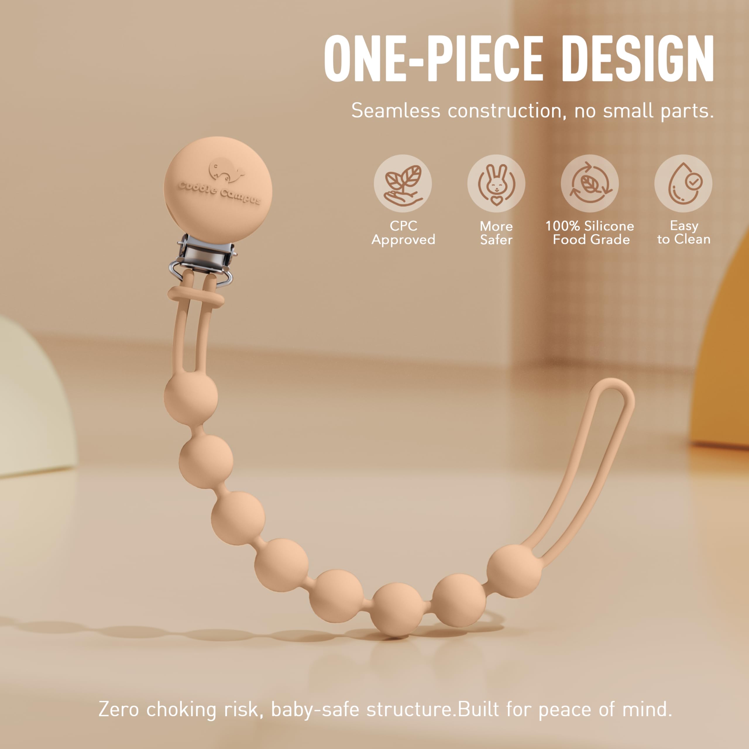UNIQUE ONE PIECE DESIGN: We’ve taken our popular pacifier holder to the next level by updating it with a one-piece silicone core. No more worrying about parts falling apart—this seamless design stays sturdy, and best of all, it eliminates any choking hazard, keeping your little one safe