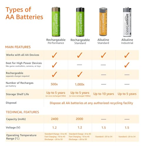 SINGLE USE: These batteries are NOT rechargeable; for rechargeable options, check out Amazon Basics rechargeable batteries
