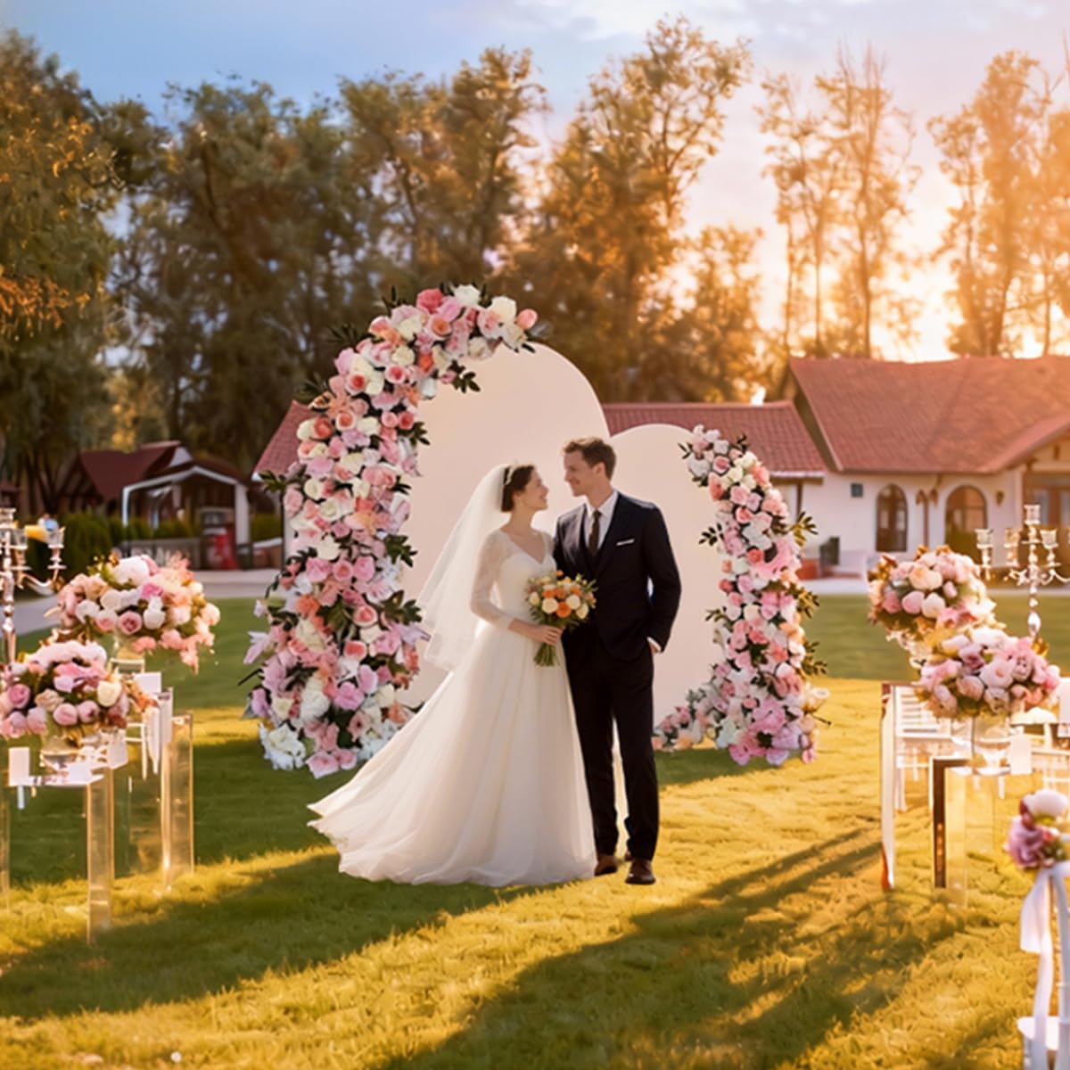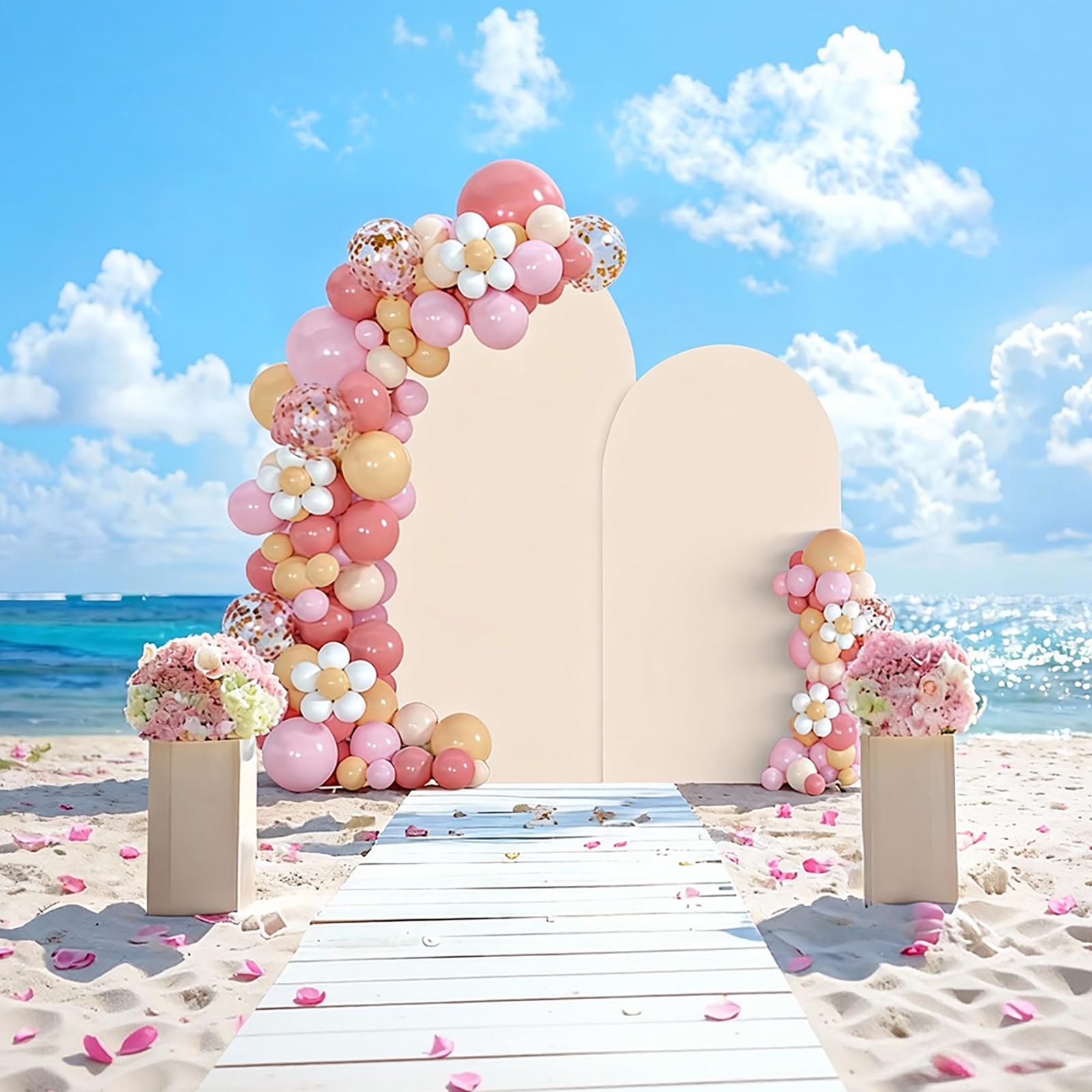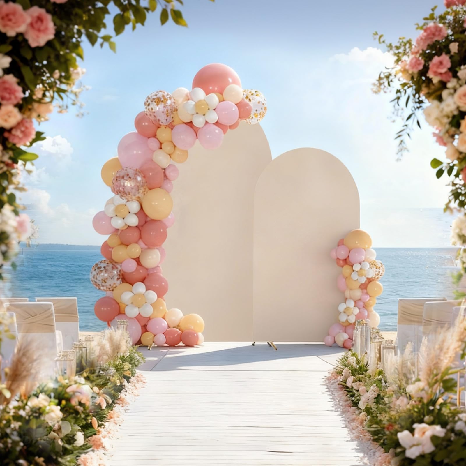 Our multipurpose metal arch backdrop stand and arch covers is durable and useful. Wedding arch covers perfect for your party decorations, wedding ceremony, reception, romantic proposal, or engagement party!Decorate wedding arch backdrop stand with arch covers, flowers, greenery, garlands, tulle swags or vines to make your event stand out.