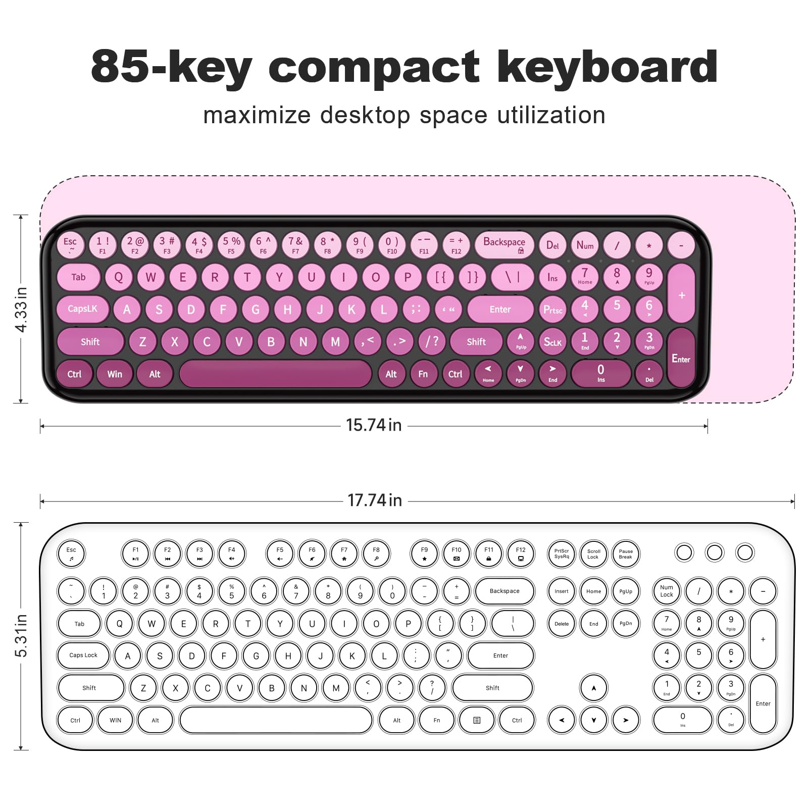 【Wireless 2.4G Tech】plug and play, 35 feet working range, 2-in-1 nano receiver, no need to install other software, no delays or Drop the line, Make your desk surface more neat and tidy, Keyboard or mouse can be used separately, just insert a single USB Receiver to use your Typewriter Wireless Keyboard Mouse Combo!