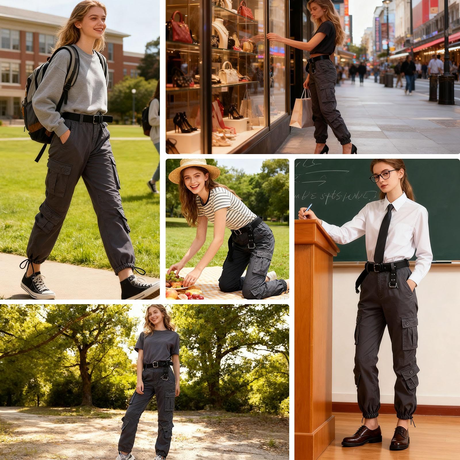 Material: Crafted with 97% cotton and 3% spandex, these cargo pants women are ultra-stretchy, breathable, and comfortable. Built to last with ripstop fabric, womens cargo pants are resist tears, wrinkles, and stains—ideal for hiking, camping, or rocking the Y2K streetwear trend!