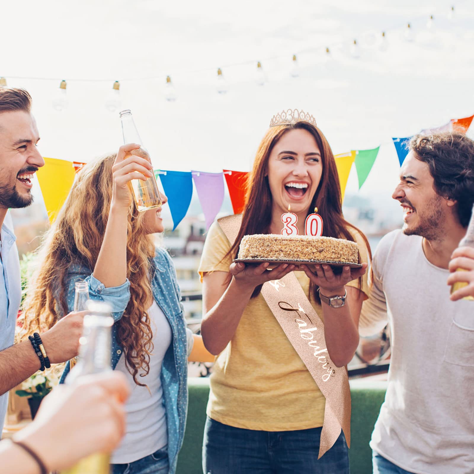 The Perfect 30th Birthday Decorations for Women: "30 & Fabulous" sash + rhinestone 30 tiara.