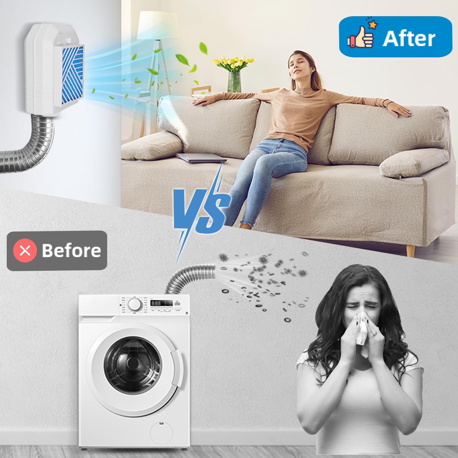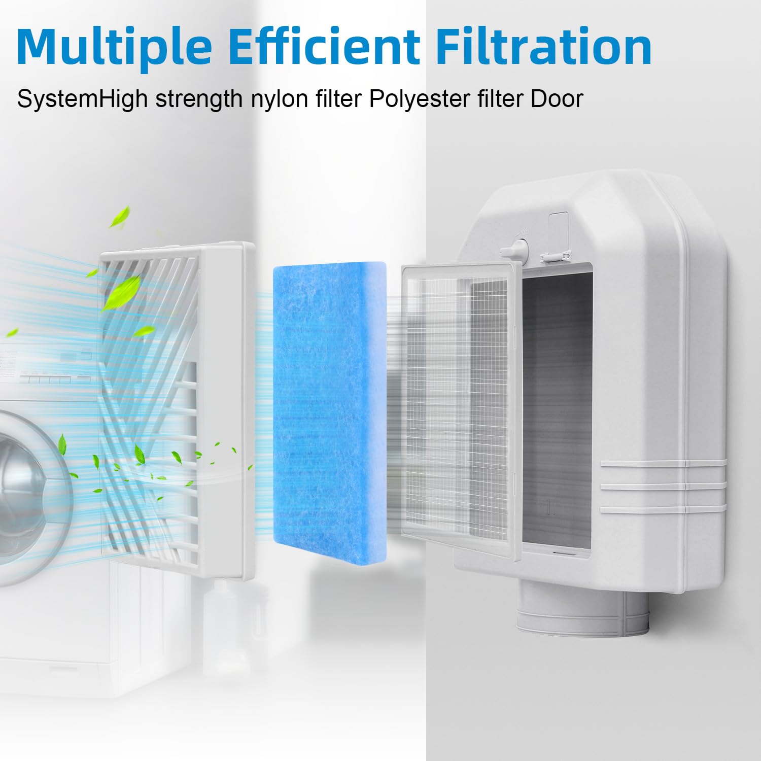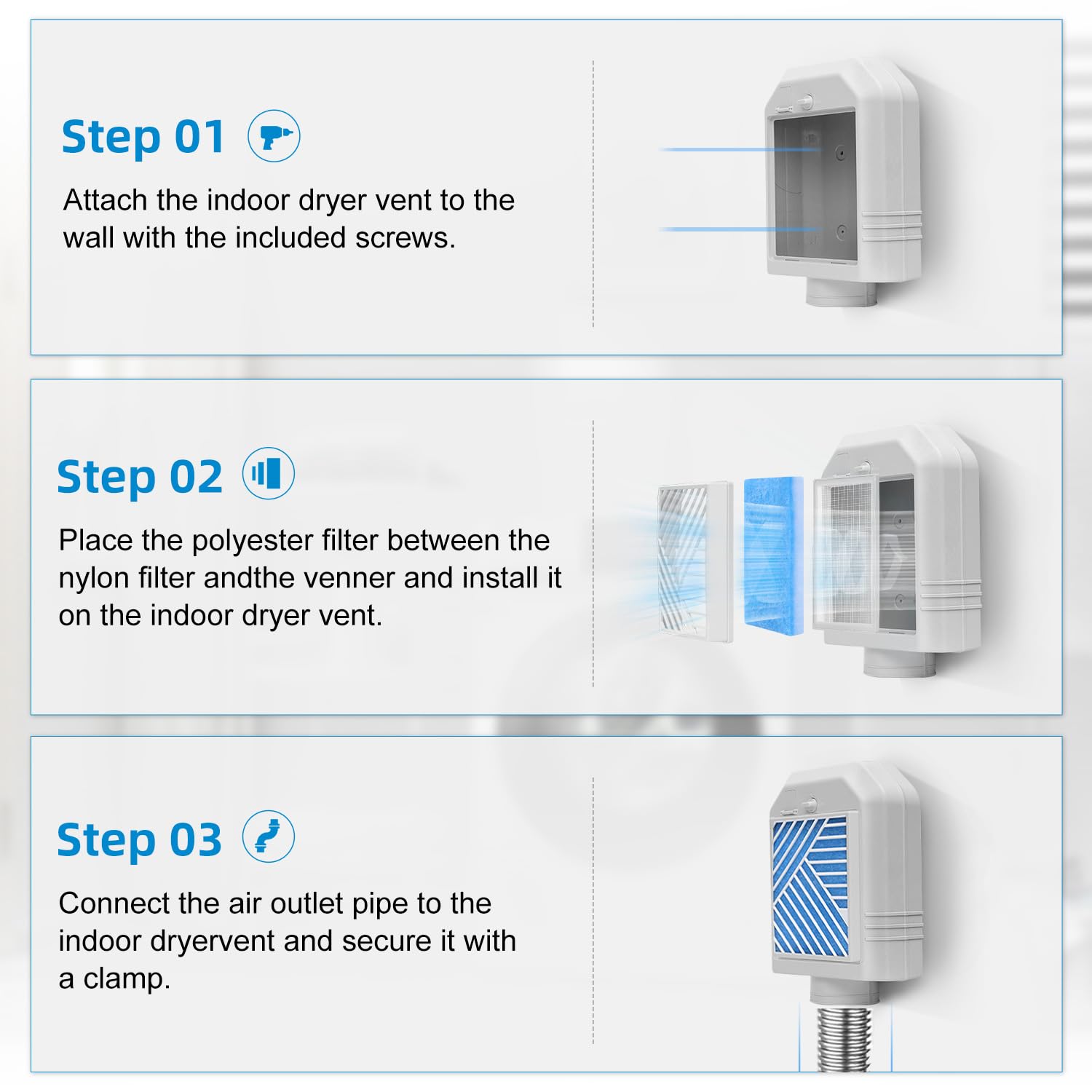 【Indoor dryer vent kit】Indoor dryer vent kit offers a multi-layer filtration system that effectively filters out lint, dust and pet hair to improve air quality. The indoor dryer vent releases hot steam during use, saving energy