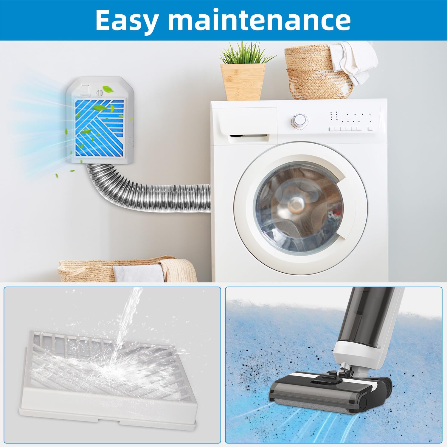 【Easy maintenancee】Dryer vents indoor are easy to clean and it is recommended to clean the dryer lint trap after 8-10 days of use. You can clean the dryer vent filter or polyester wool directly with water or a vacuum cleaner.