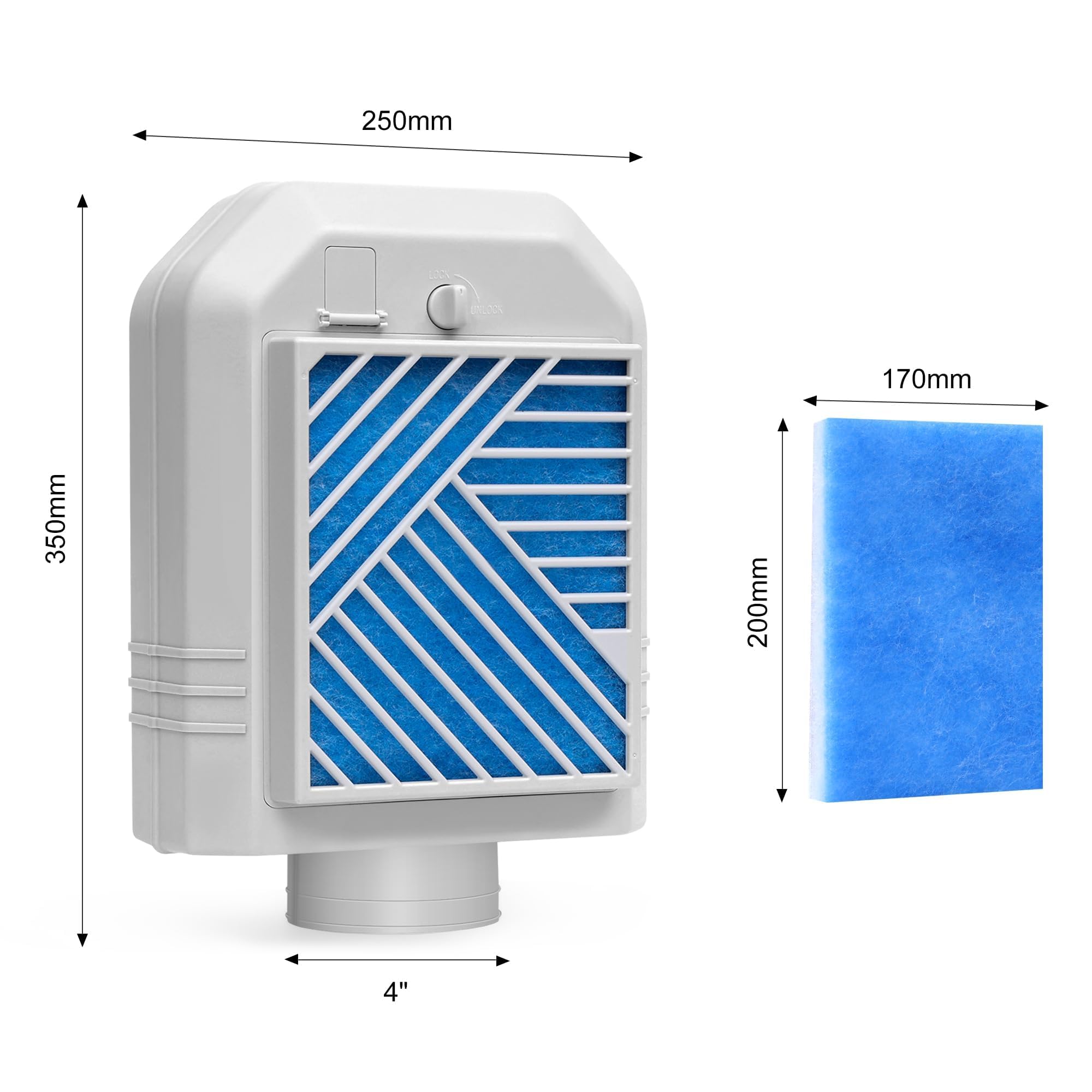 【Excellent quality】The indoor dryer vent is made from high temperature resistant fireproof material with a dryer vent filter and 4x upgraded polyester fibre filter wool to extend the life of the dryer lint trap.