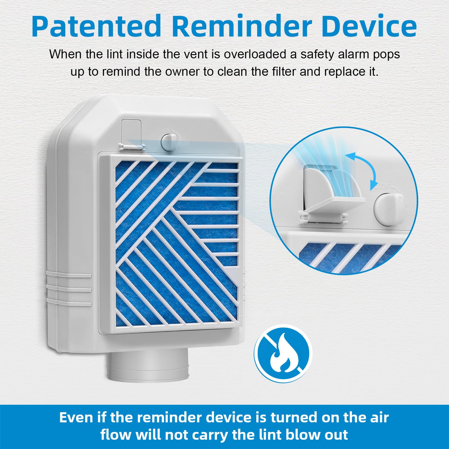 【Upgraded security alert】Our indoor dryer vent safety alert is an enhanced, patented safety alert that reminds you to clean the dryer vent when there is a large build-up of lint or hair in the vent to prevent the dryer from overheating and catching fire.