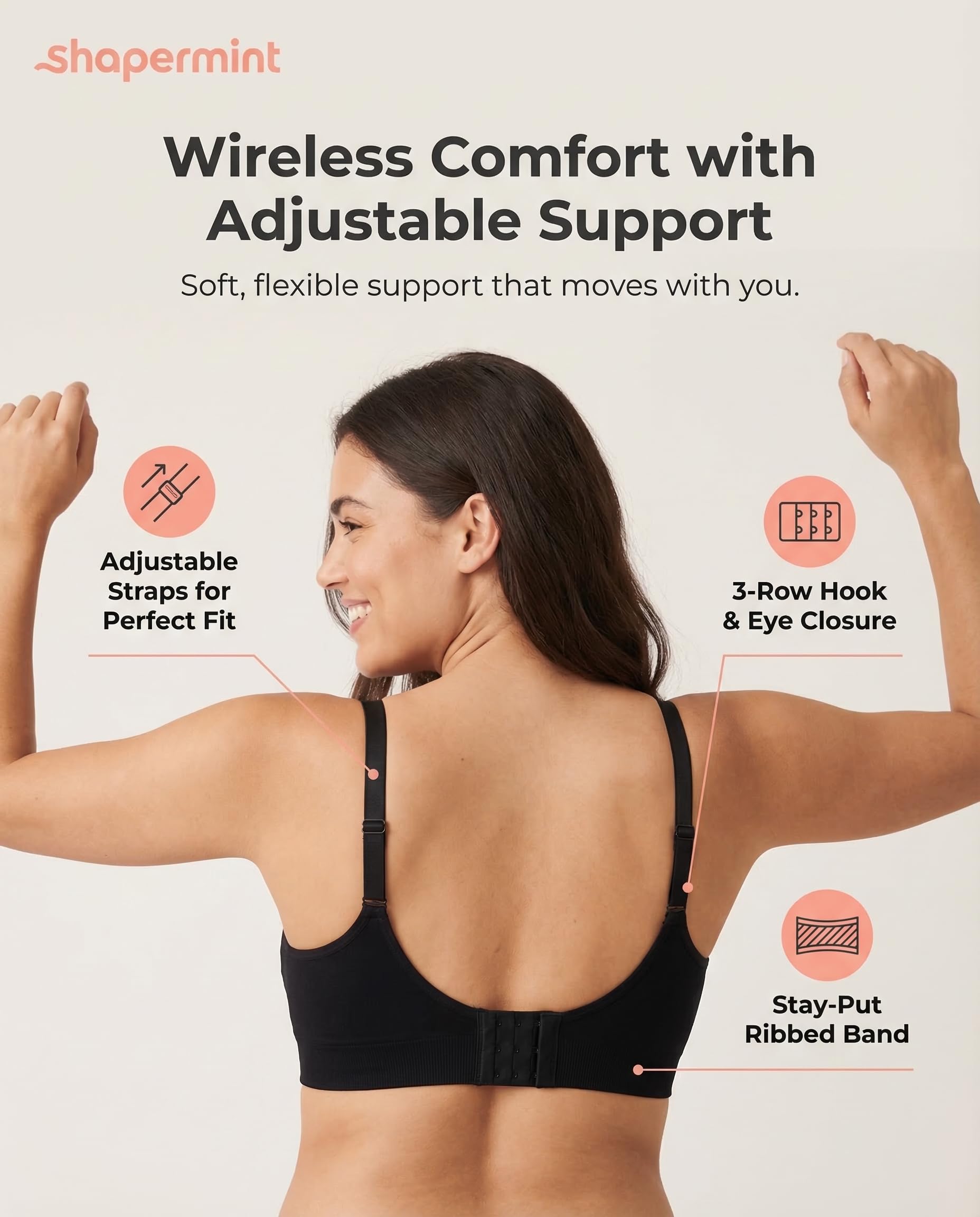 EVERYDAY EASE & CARE: Designed with adjustable straps that stay comfortably in place, this wireless bra adapts to your movement for lasting support. It stays invisible under fitted tops and keeps its soft, seamless feel even after countless washes—no removable padding needed, just effortless confidence day after day.