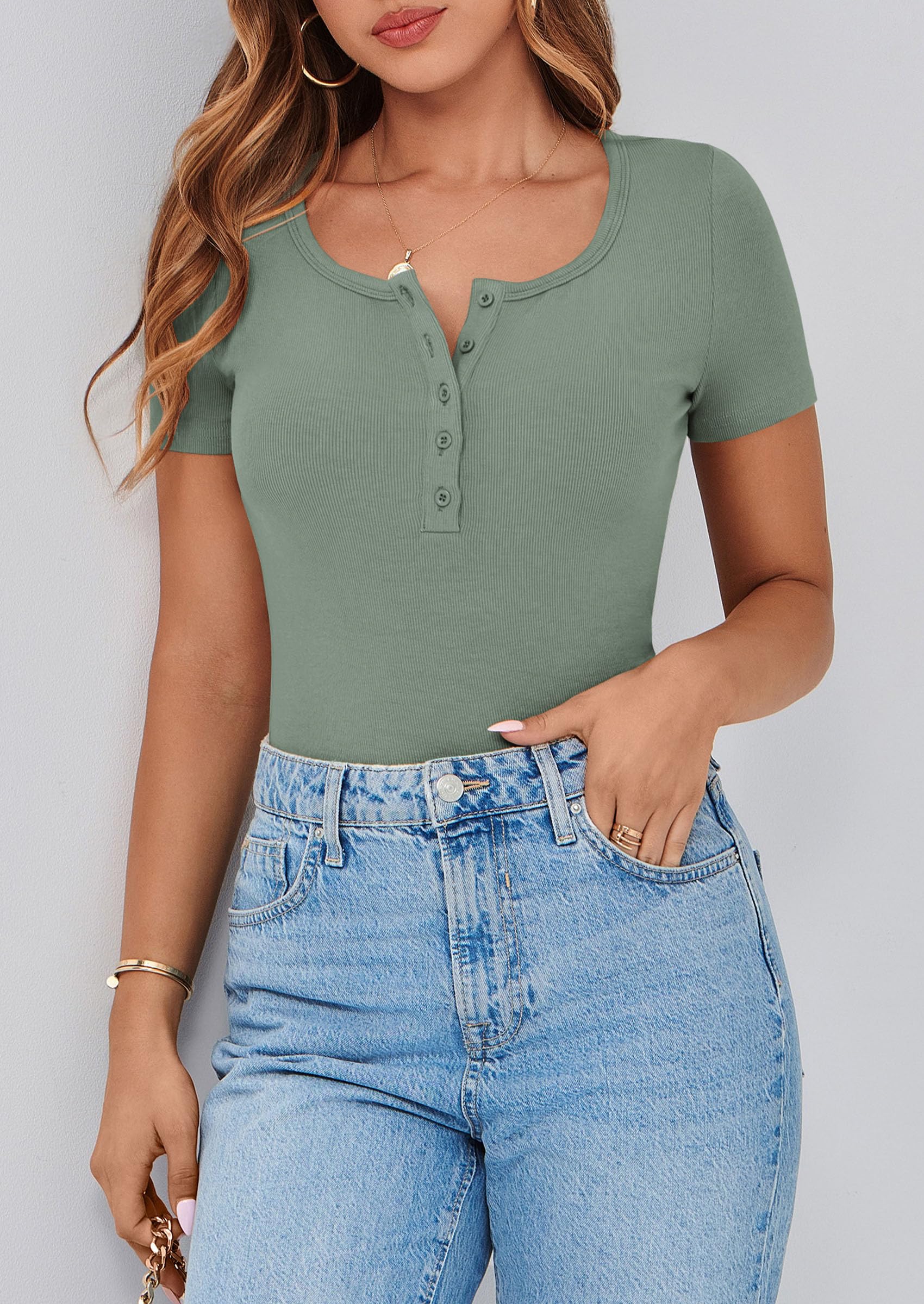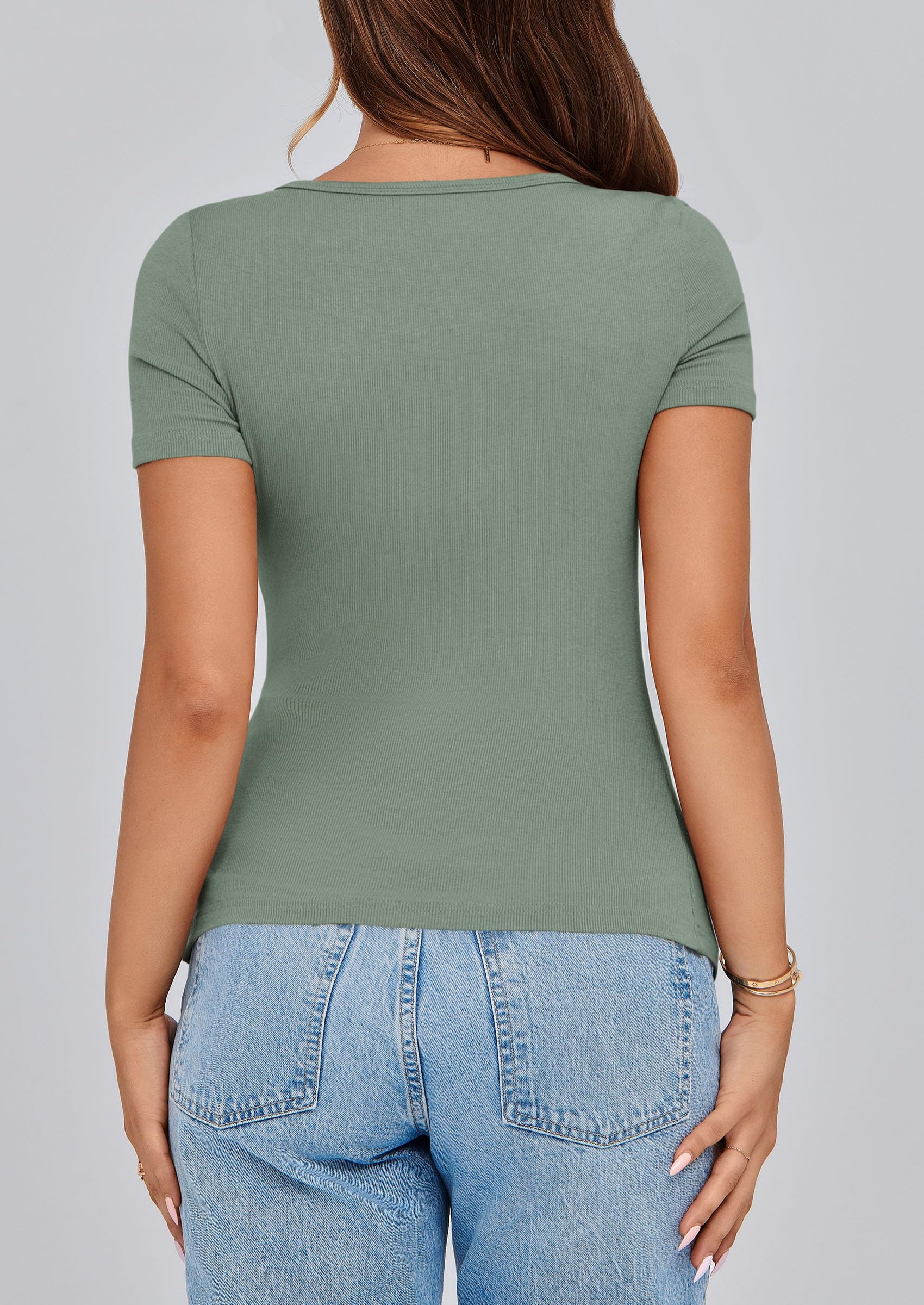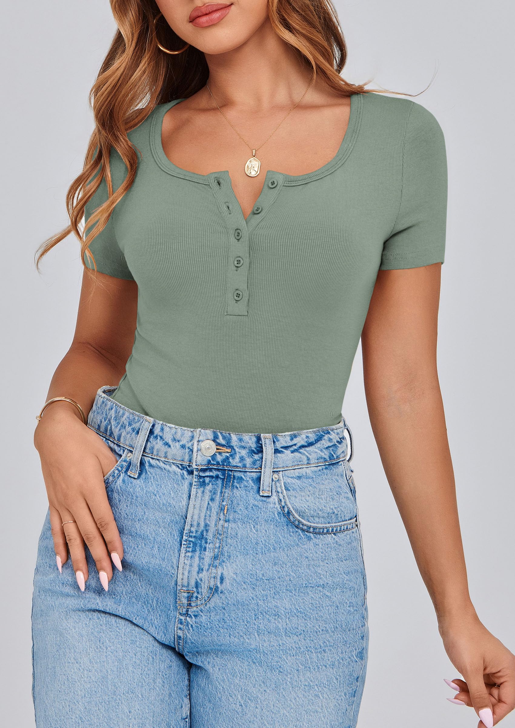 FEATURES: Short Sleeve Womens Tee Shirt; Henley Shirts for Women; Button Up Summer Tops; Fitted Tops For Women; Ribbed Casual Tops For Women; Solid Color Ladies Tops And Blouses; Going Out Tops For Women; Spring Women's T-Shirts; Basic Tops For Woman