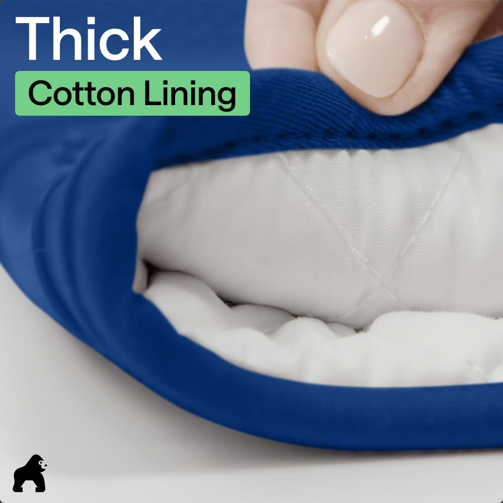 THICK COTTON LINING THROUGHOUT: stay comfortable while you cook; soft cotton lining offers additional protection and comfort, and feel simply amazing; plus, silicone is flexible and conforms easily to your unique grip