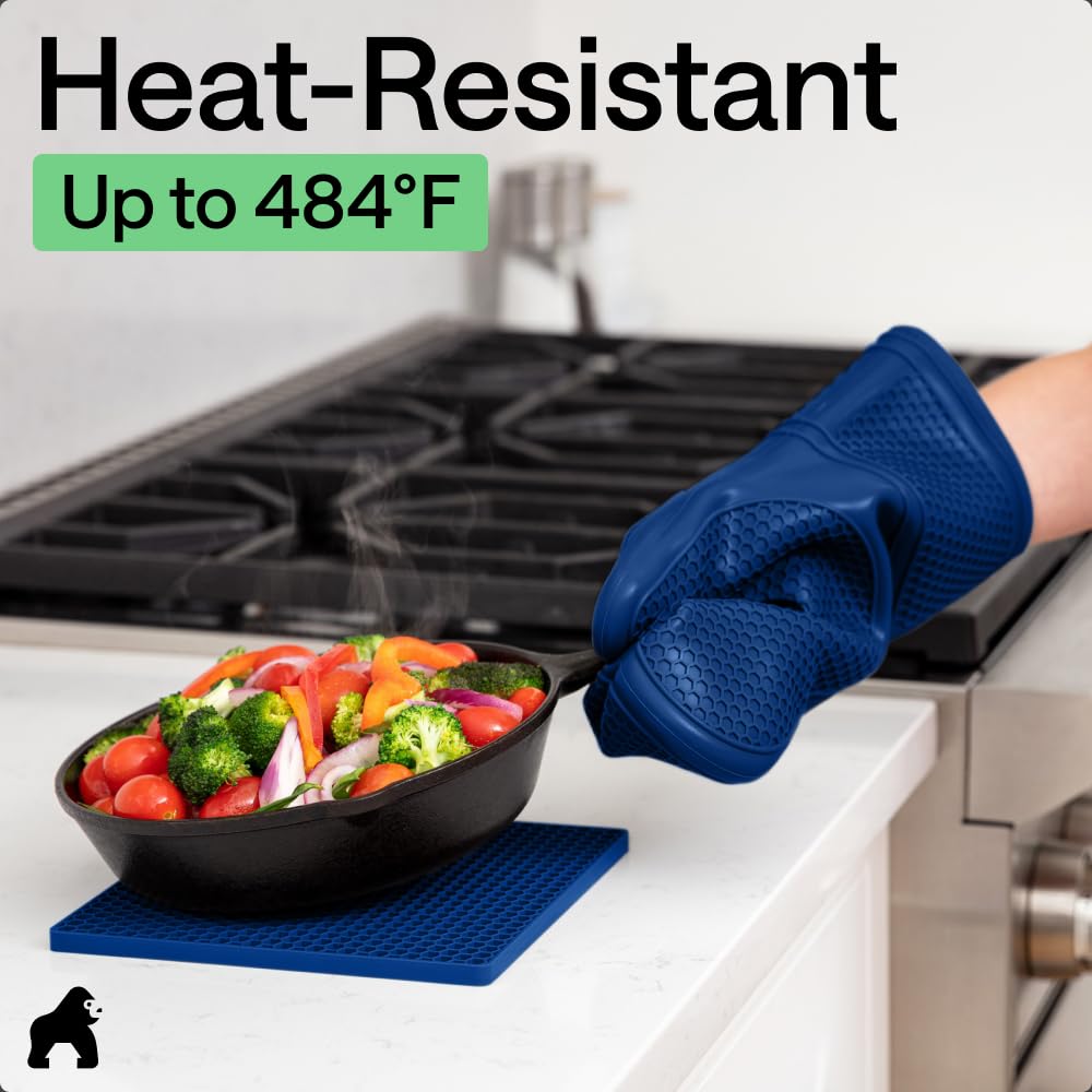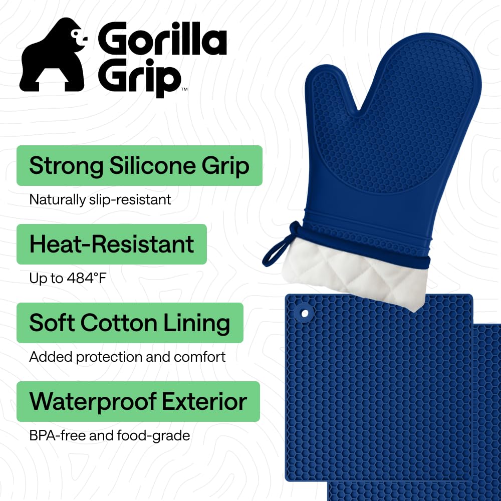 WATERPROOF AND STAIN RESISTANT: no more constantly stained oven mitts and trivets; Gorilla Grip Silicone Mitts and Trivets are both stain resistant and waterproof; spills can easily and instantly be rinsed away under water; hot liquids won’t soak through and scald your skin as they would with other materials; trivets are also dishwasher safe