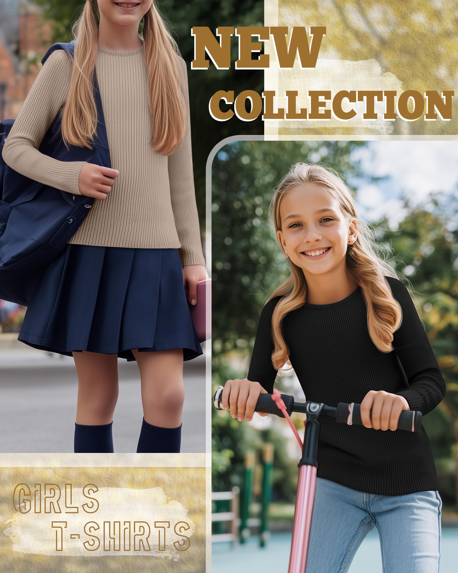 Convenient 3 Piece Set: this set includes three kids ribbed long sleeve shirts, ensuring she always has a fresh option; These tops for girls are ideal for her everyday wear, whether it's school, playing outside, or just lounging at home