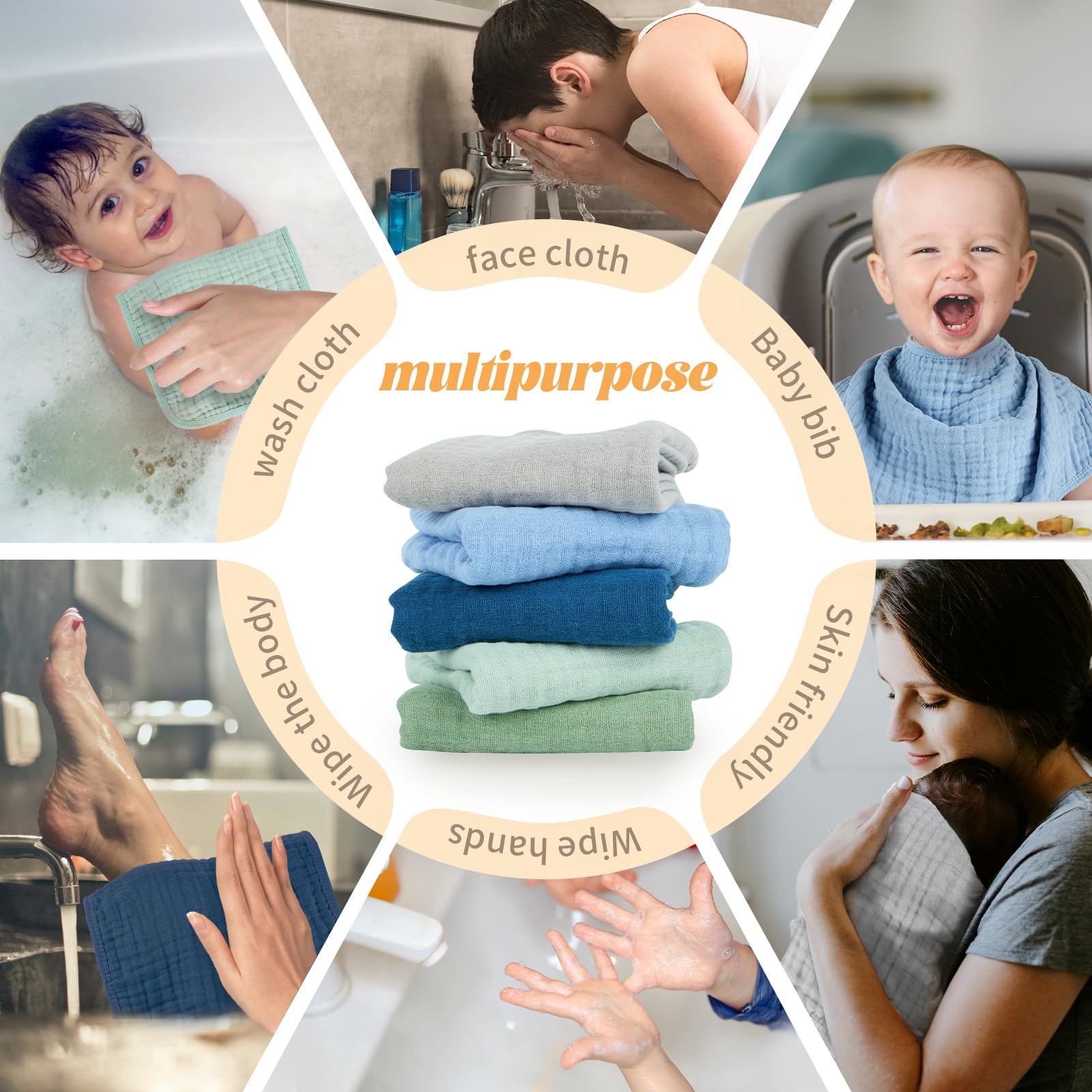Verstile Baby Essentials: Our muslin burp cloths will be a thoughtful present for any occasion like baby shower, baby registry, birthday, Christmas, or you can use it as burp rags, baby bibs, baby washcloths and towels, baby wipes, anything else that's available. A must-have for teething baby and mess no more.