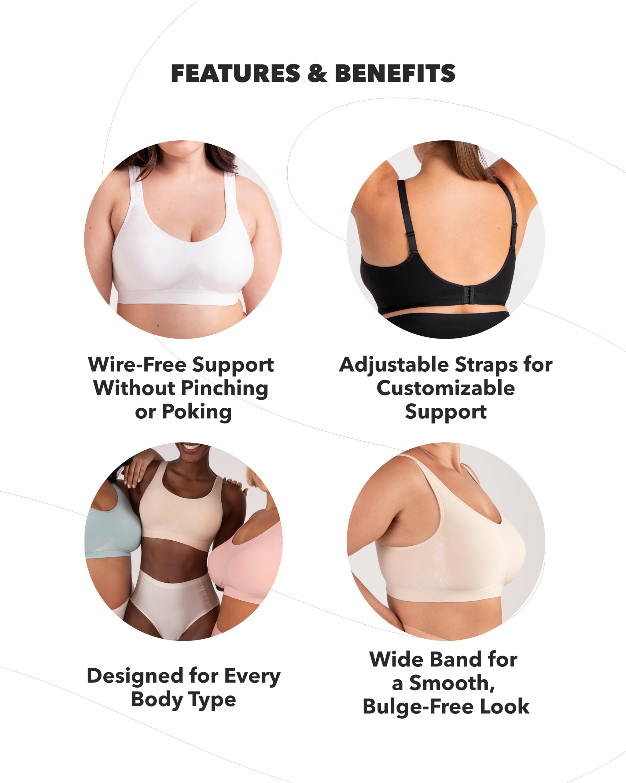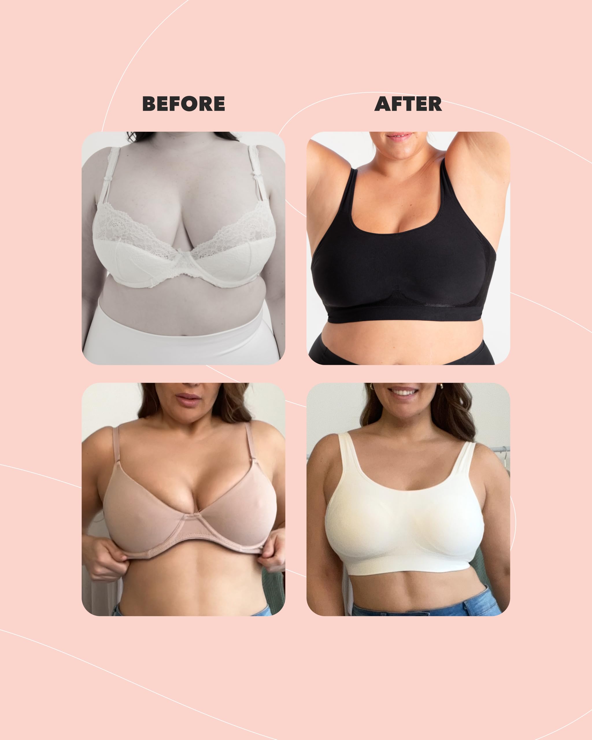 WIRELESS SUPPORT & LIFT: Experience comfort with bras for women no underwire that smooth, lift, and support without pinching or poking. This wireless bra offers gentle shaping and all-day ease while keeping you confident and supported.