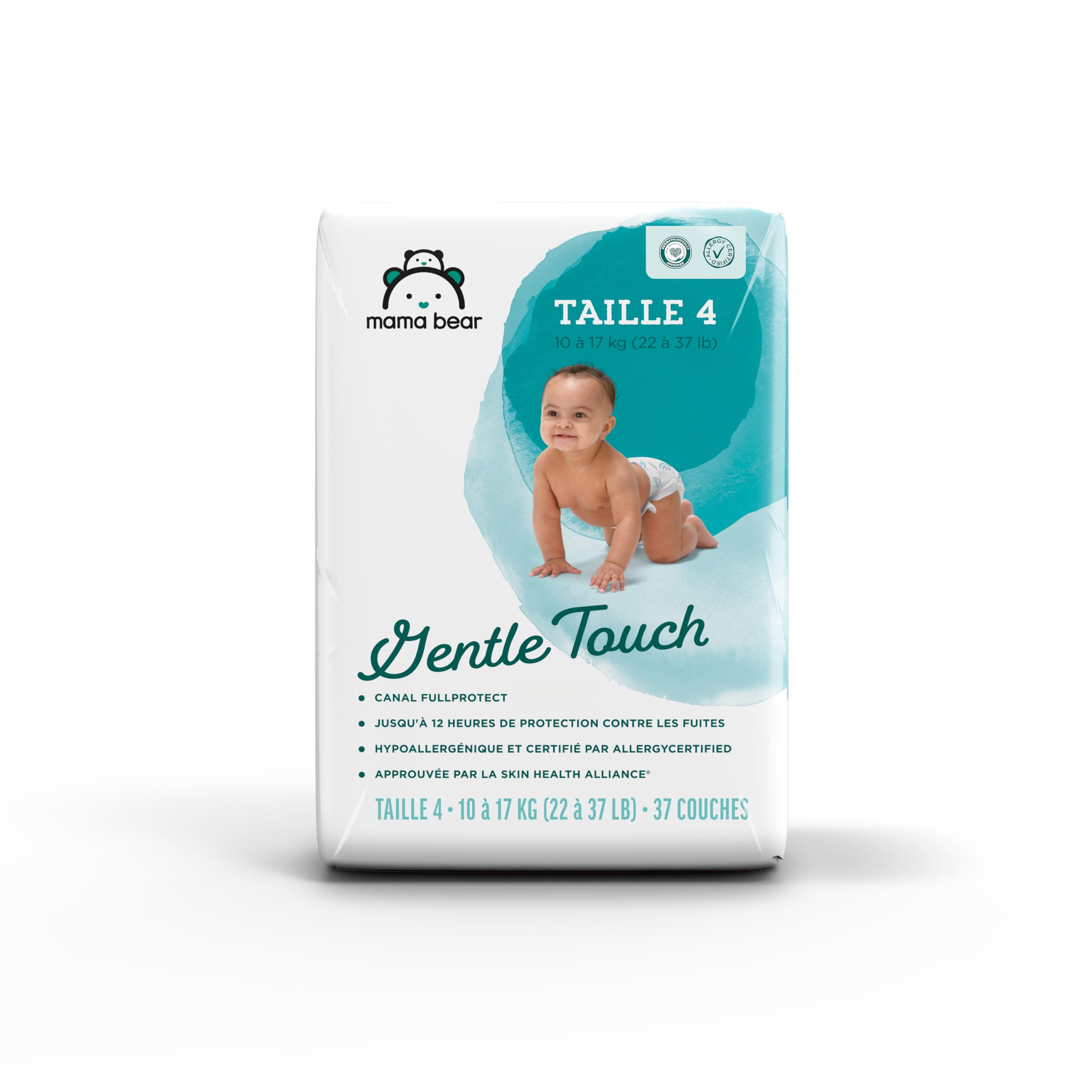 IN THE BOX: Mama Bear Gentle Touch Diapers for babies 22–37 pounds; size 4; 37 count