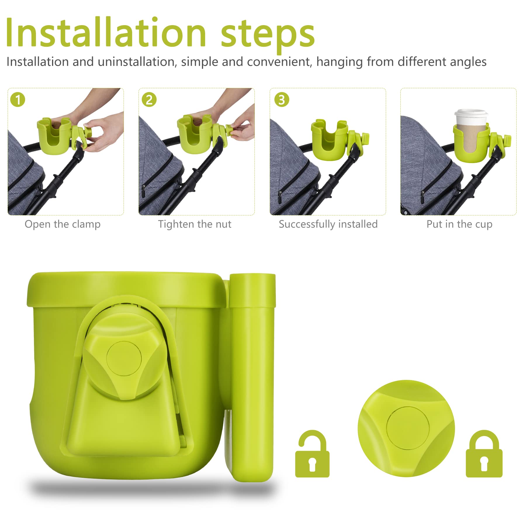 Versatile Compatibility: Can be used with many baby strollers. Before installation, measure the diameter of the handlebar or frame where you plan to attach the cup holder. Ensure the diameter does not exceed 1.2 inches to ensure a secure fit.