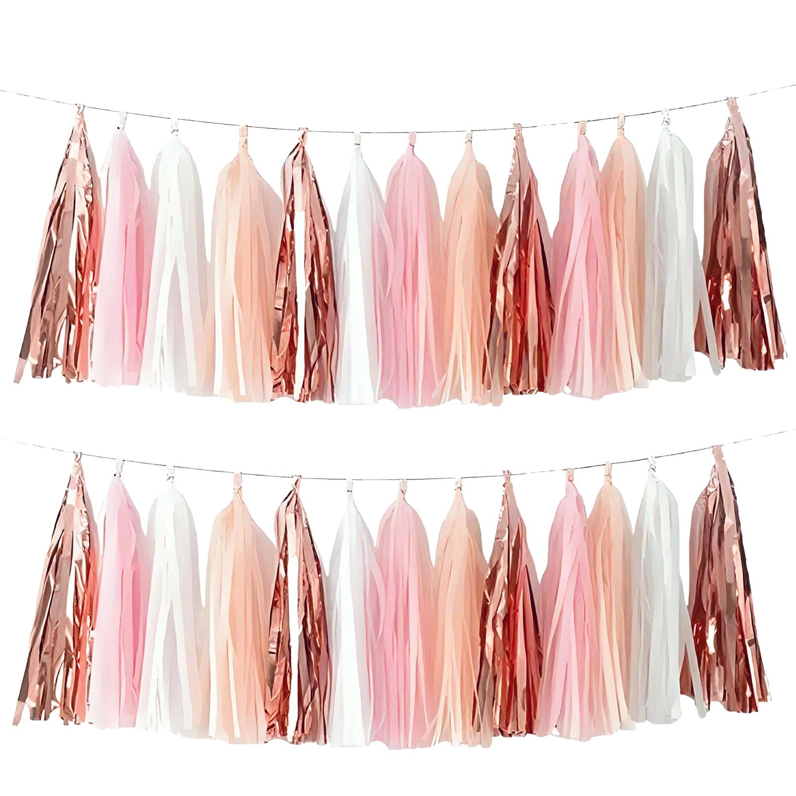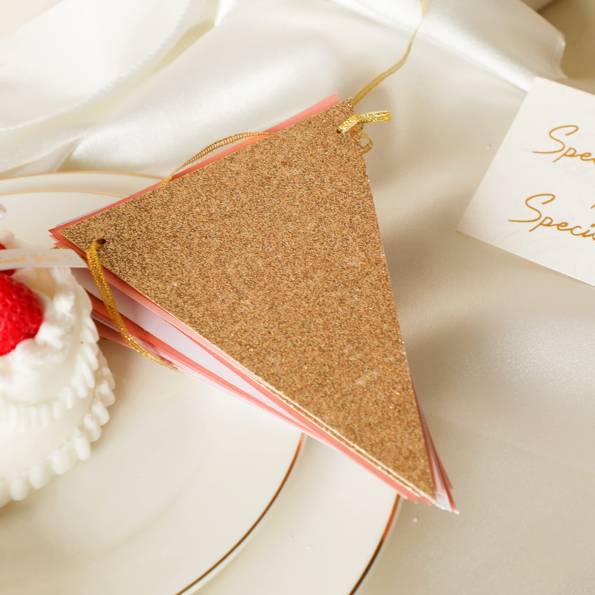 Package comes 1pcs 4 meters long blush pink and rose gold glitter triangle paper garland