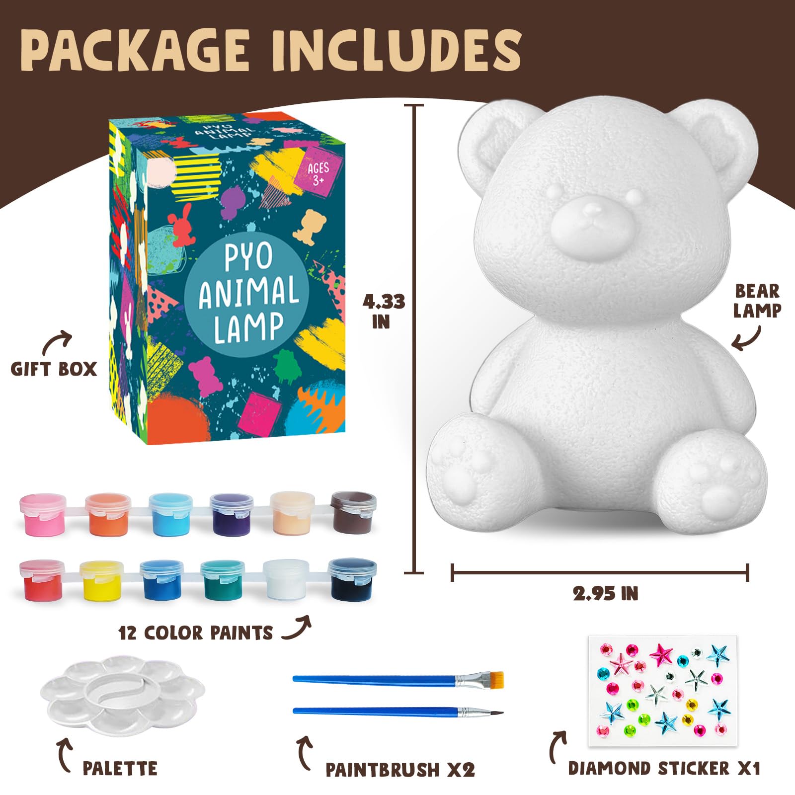 【Use As Night Light Or Home Decoration】 Light up your room with a bear lamp you've painted yourself! This bear craft kit not only allows kids to paint their own lamp but also lights up their space with their artistry. It's ideal for sparking creativity in arts and crafts for kids ages 8-12.