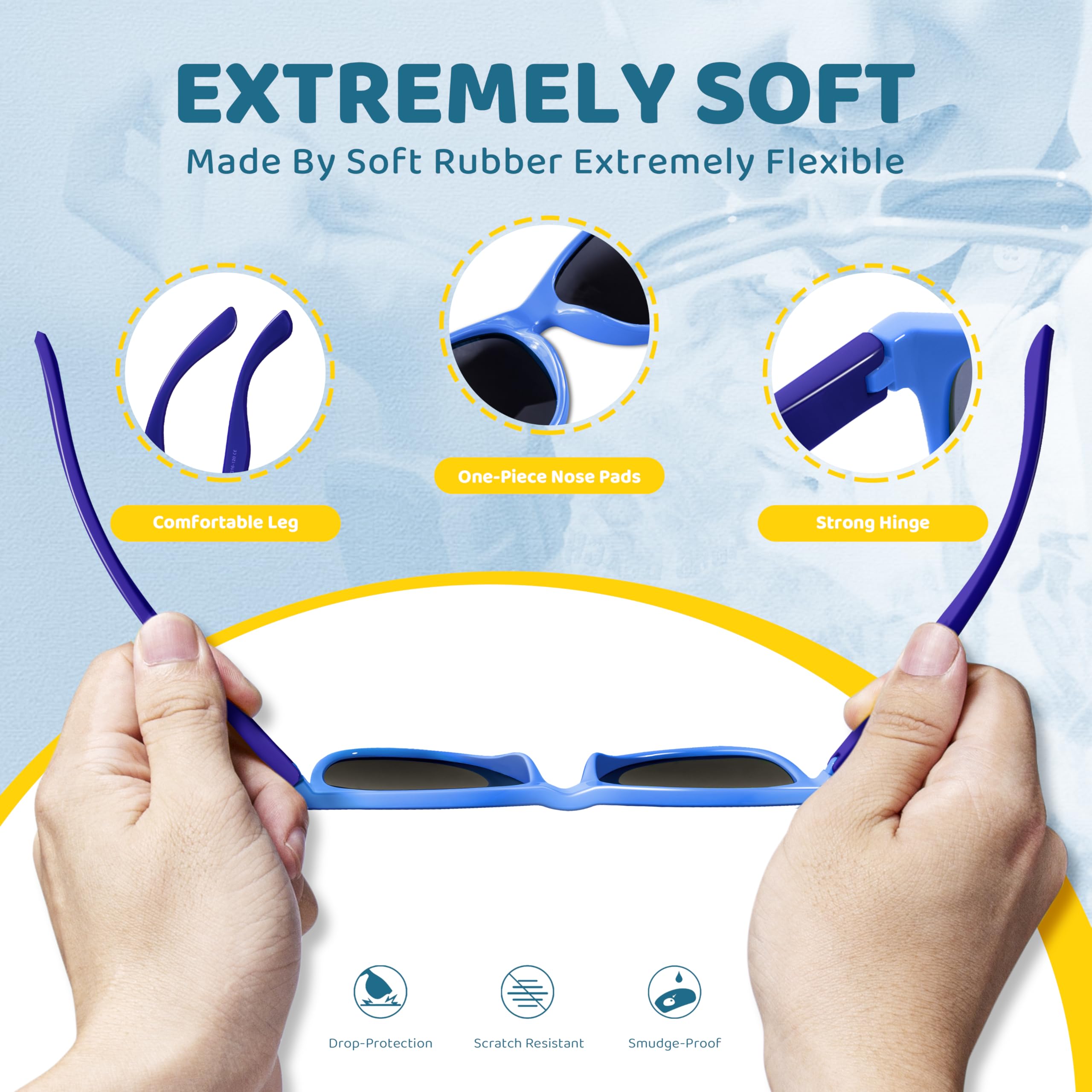 SAFE AND COMFORTABL - RIVBOS sunglasses frame is made of soft silicone and unbreakable material, which is not easy to break, very durable, and also provides a comfortable wearing experience.