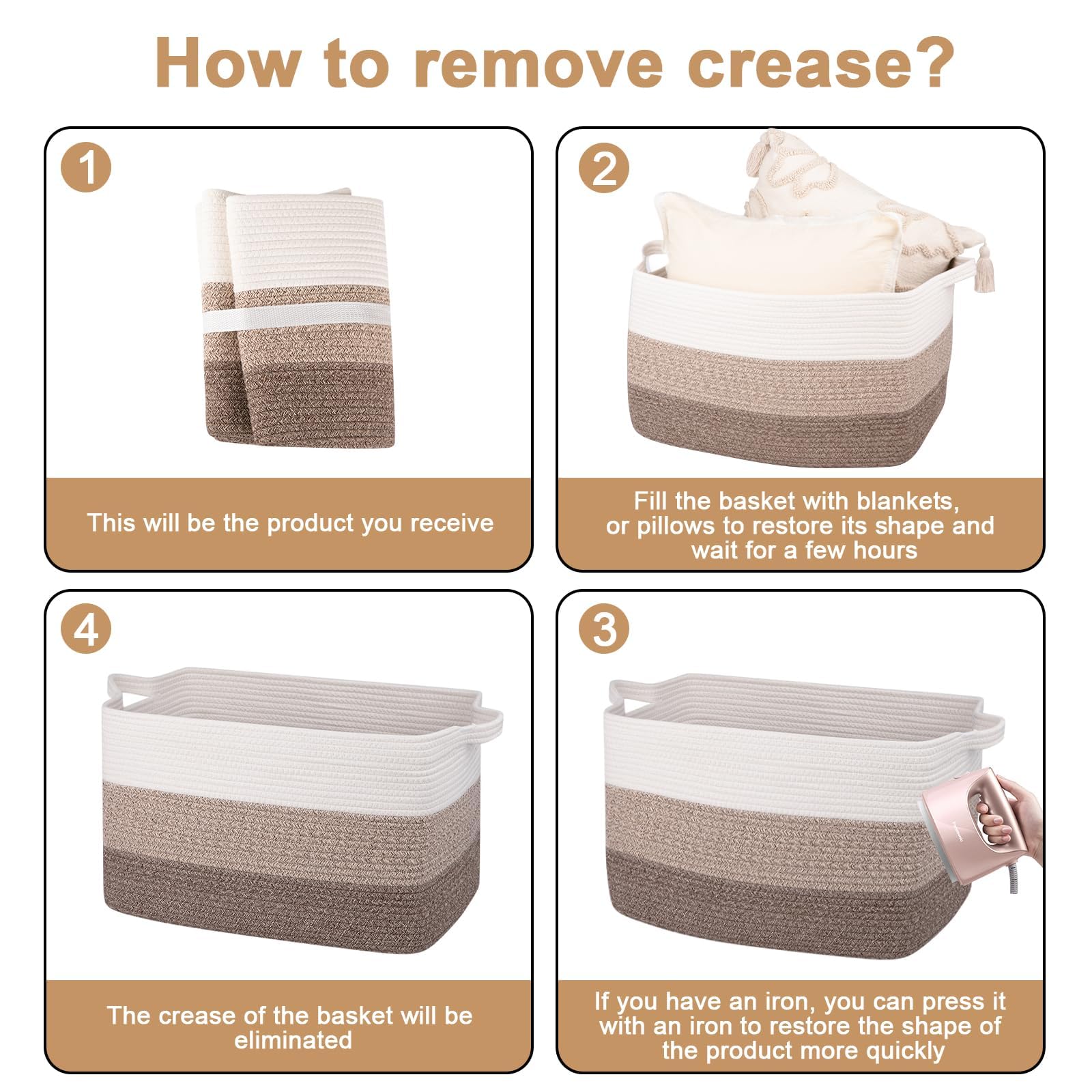 NOTE: The toy basket is folded, but it will turn back to its elegant shape quickly if you fill it with some pillows or blankets, and iron is great idea to remove the creases