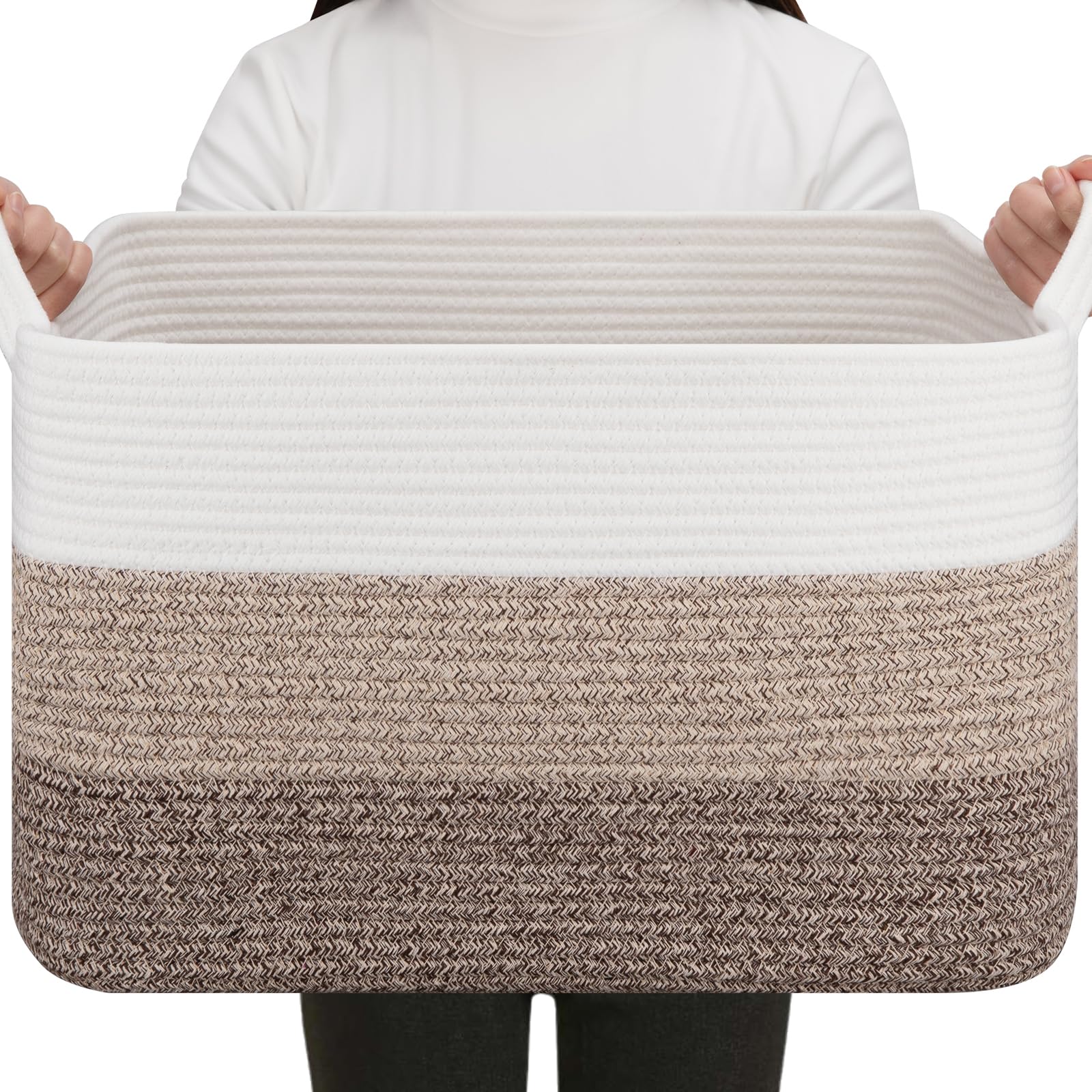OIAHOMY Storage Basket ,Cotton Rope Woven Basket Organizing and decorating your home can sometimes feel like an overwhelming task.OIAHOMY rectangle storage baskets help you create a fashionable and organized space.Also this is a good pick for gift. Specifications about the Storage Basket: Material: 100% Cotton Color: Yellow Size: 117.7" x 13.8" x 11" Notifications:The Cotton Woven Organizer will be fold for the storage and shipping purposes,please fill it with the colthing or towel, it will back to the original shape in short time. 100% Cotton Material Made of 100% cotton, natural and environment. Ours is healthy for bkids, elders, and pets with no harsh additives or coatings. Nice decorative basket for nursery or baby room. Perfect for storing clothing, diapers, and plush stuffed animal toys. Multiple Purpose Reduce clutter in office, baby's room, bed room, bathroom,utility room, living room and playroom. These can hold household items,Office Supplies , kid's toys and more. We recommend placing these near a stack of smaller miscellaneous and placing items inside. It's a great way to reduce clutter for better organization and less stress. Unique Design These baskets are hand woven for an elegant look. Lovely packaging that makes the perfect gift. Choose from many different colors. They are great for storing and carrying clothing,towels, plants, toys, books and much more. This will make an impressive, attractive addition to your home. Please don't hesitate anymore, add it to your cart and purchase it right now!