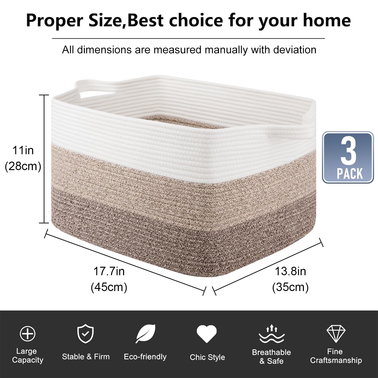 Double reinforced Handles:We use the highest grade cotton rope as raw material and all the stitches are distribution and fine,which makes the baskets better wear resistance and durability to be used for many years.In addition, the handle of this large basket has a unique design and is wrapped around with thick double-layer suture rope to prevent tearing and keep its shape and never fall off