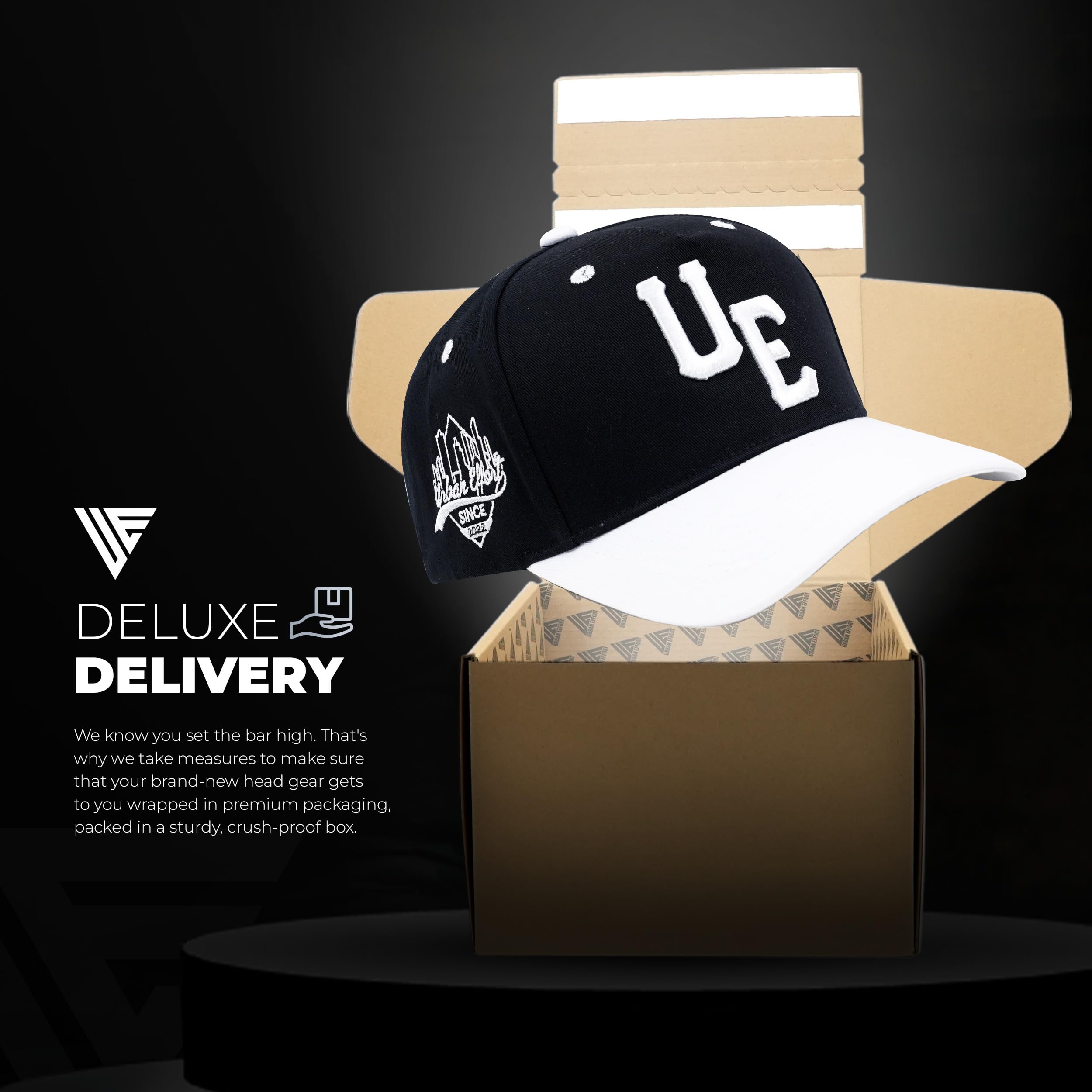 Packed with Care: A premium custom Classic hat that comes packed in an elegant gift box, to make sure it arrives safely at your doorstep, whether as a new addition to your collection or as a gift for your loved one.