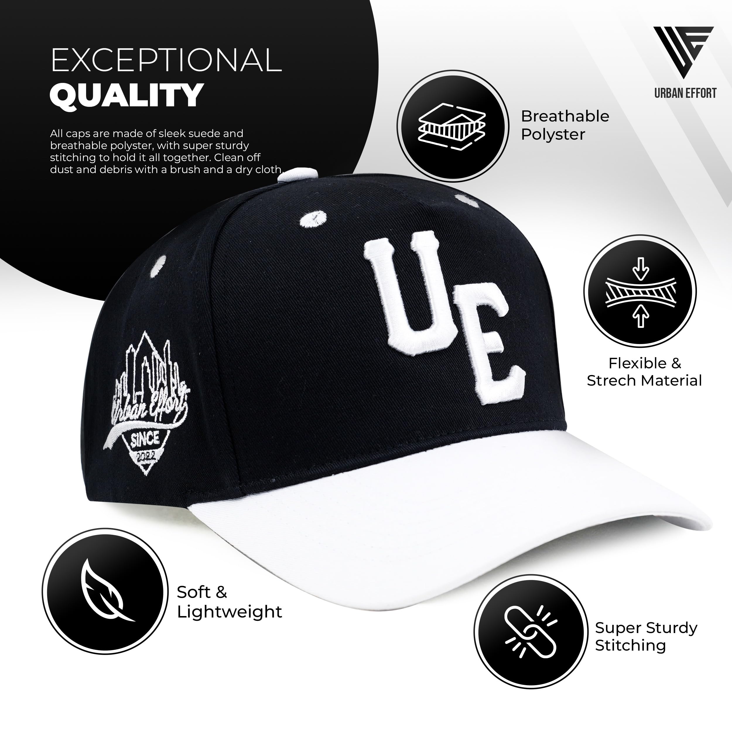 Premium Quality: The Urban Effort women and man's cap is a true standout. It combines a premium combination of polyester mesh and suede fabric for comfort, along with intricate details that make it truly unique. With its exquisite craftsmanship, this cap is made to last. It's made of 100 percent polyester for durability and is a super comfortable, adjustable hat with a snapback.