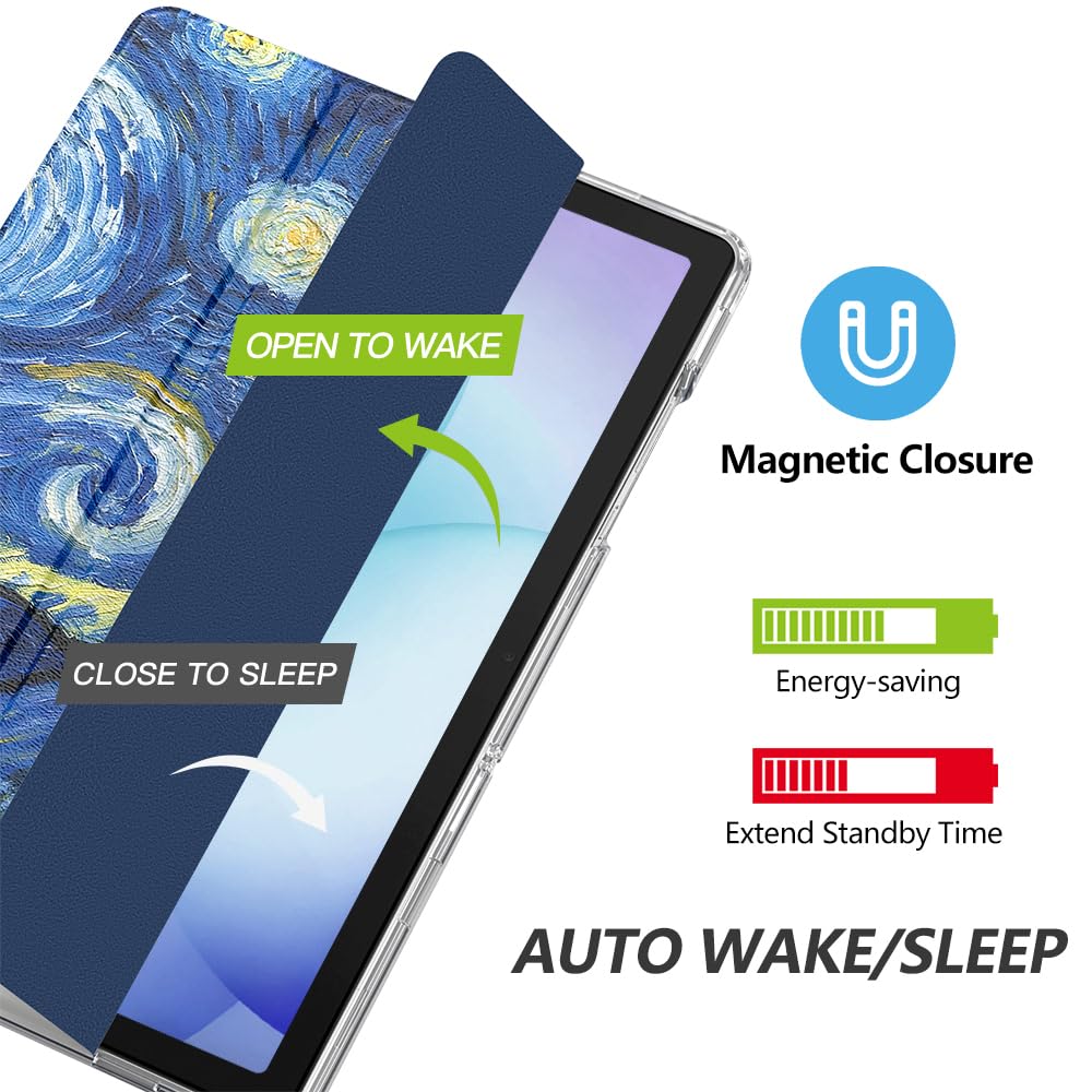 Auto Wake/Sleep: Built-in magnetic strip, automatically wakes or puts your tablet to sleep when the lid is opened and closed. This Galaxy Tab A11+/A9+ Case Protects and extends battery life