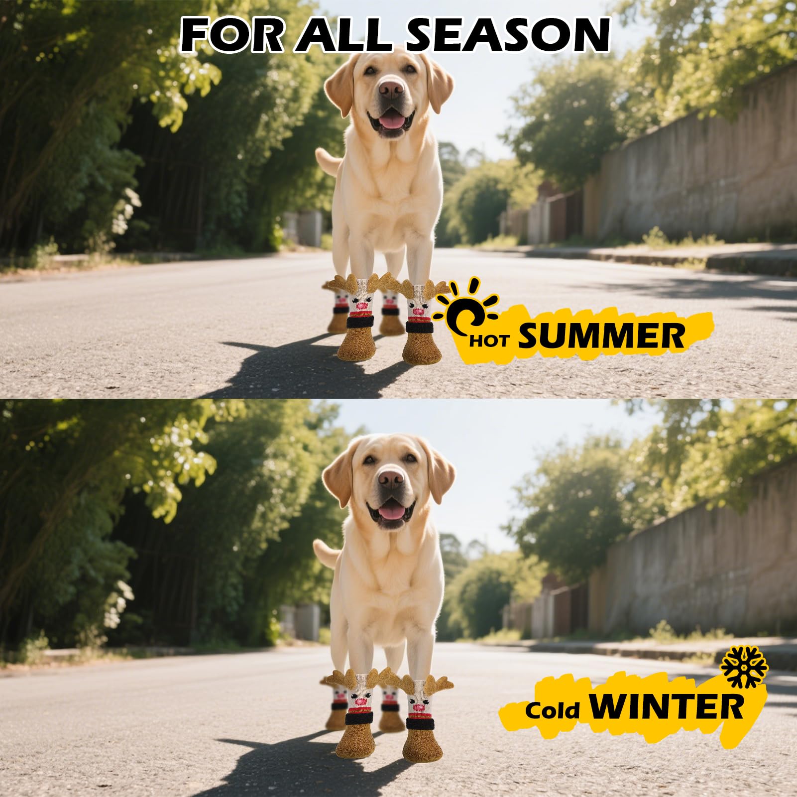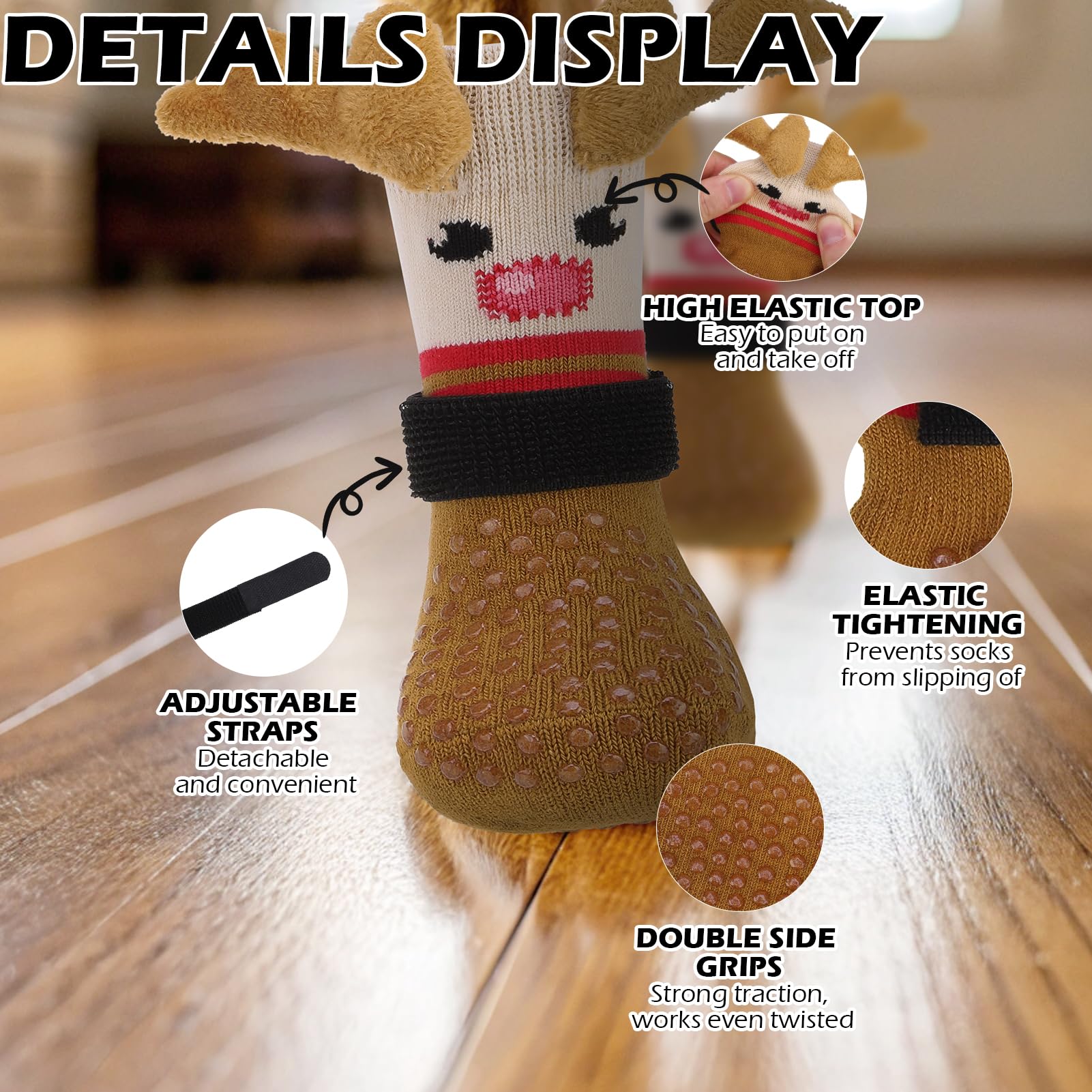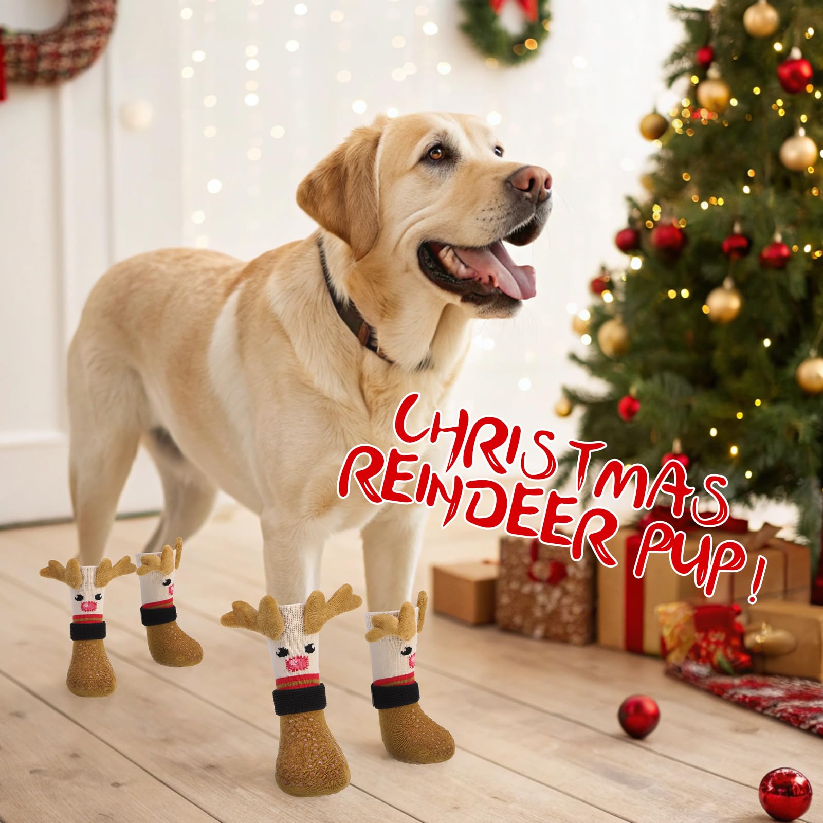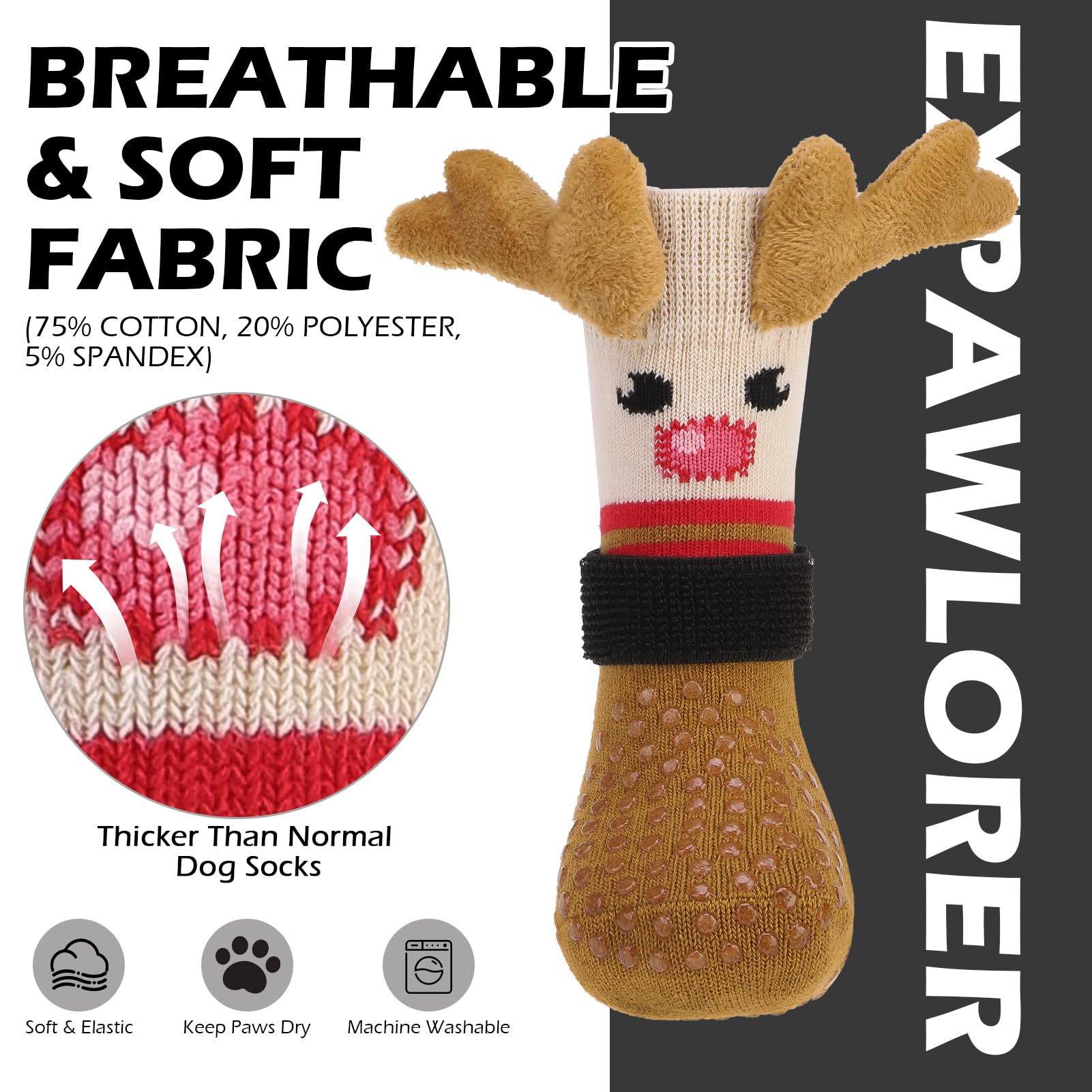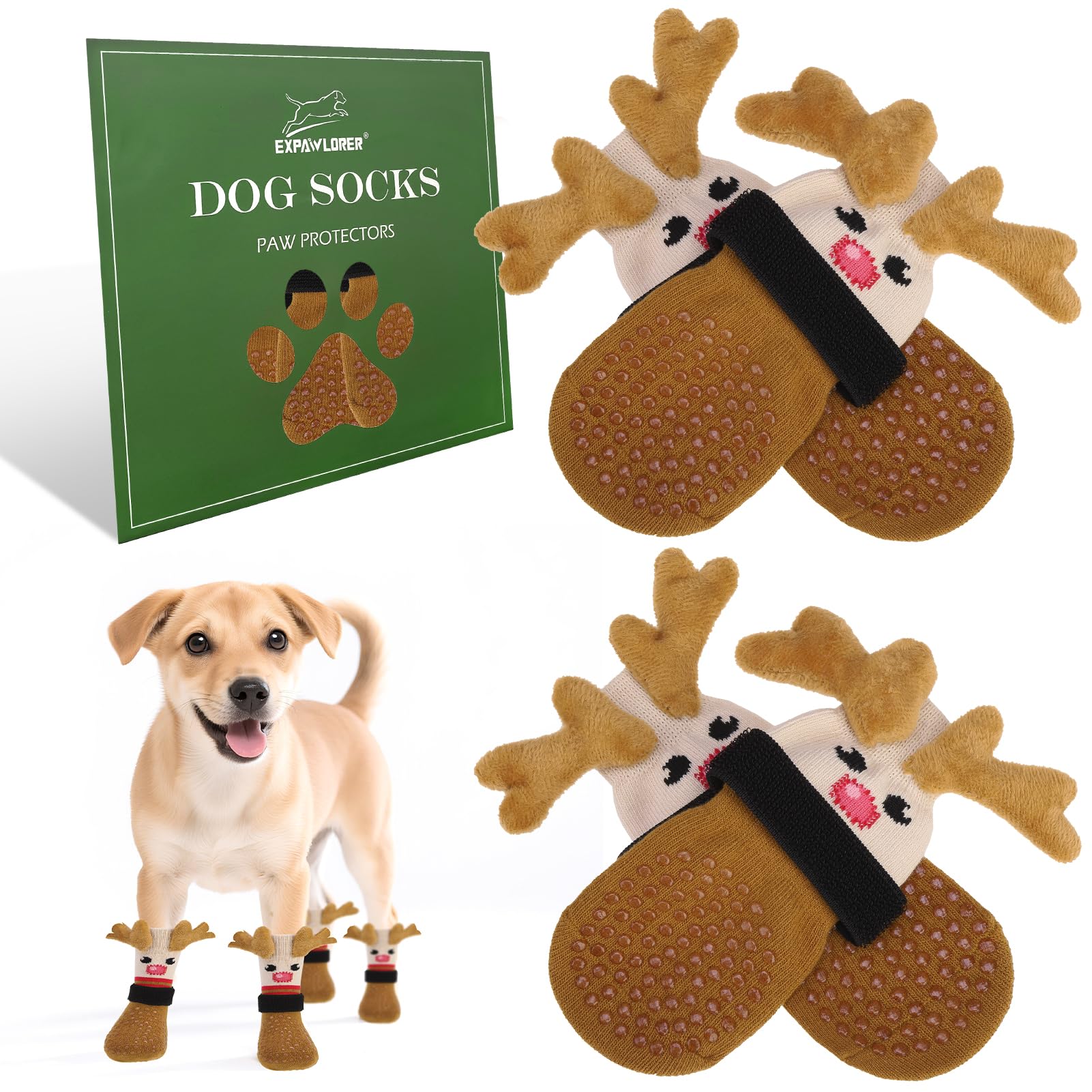 THE PERFECT GIFT FOR CHRISTMAS: Our dog socks are specially designed for Christmas, suitable for the New Year atmosphere, with a unique and cute Christmas reindeer shape. The three-dimensional deer horn design is very eye-catching, making your dog stand out during the Christmas holiday! Not only suitable for Christmas and other holidays, but also for daily wear