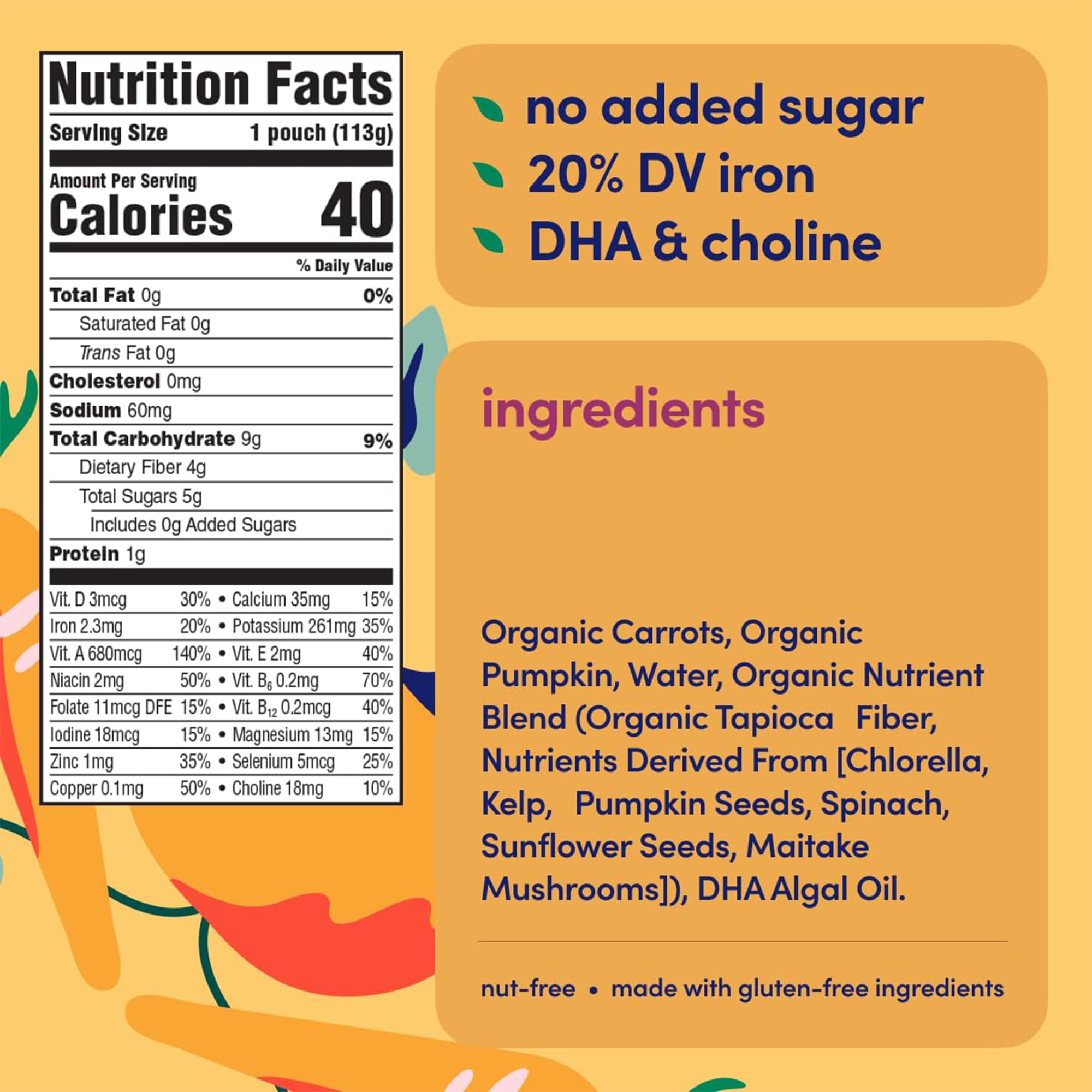 VEGGIE FIRST & NO ADDED SUGAR β Made with wholesome veggies and fruits like pumpkin, mango & apple, no added sugar, gluten, dairy or nuts