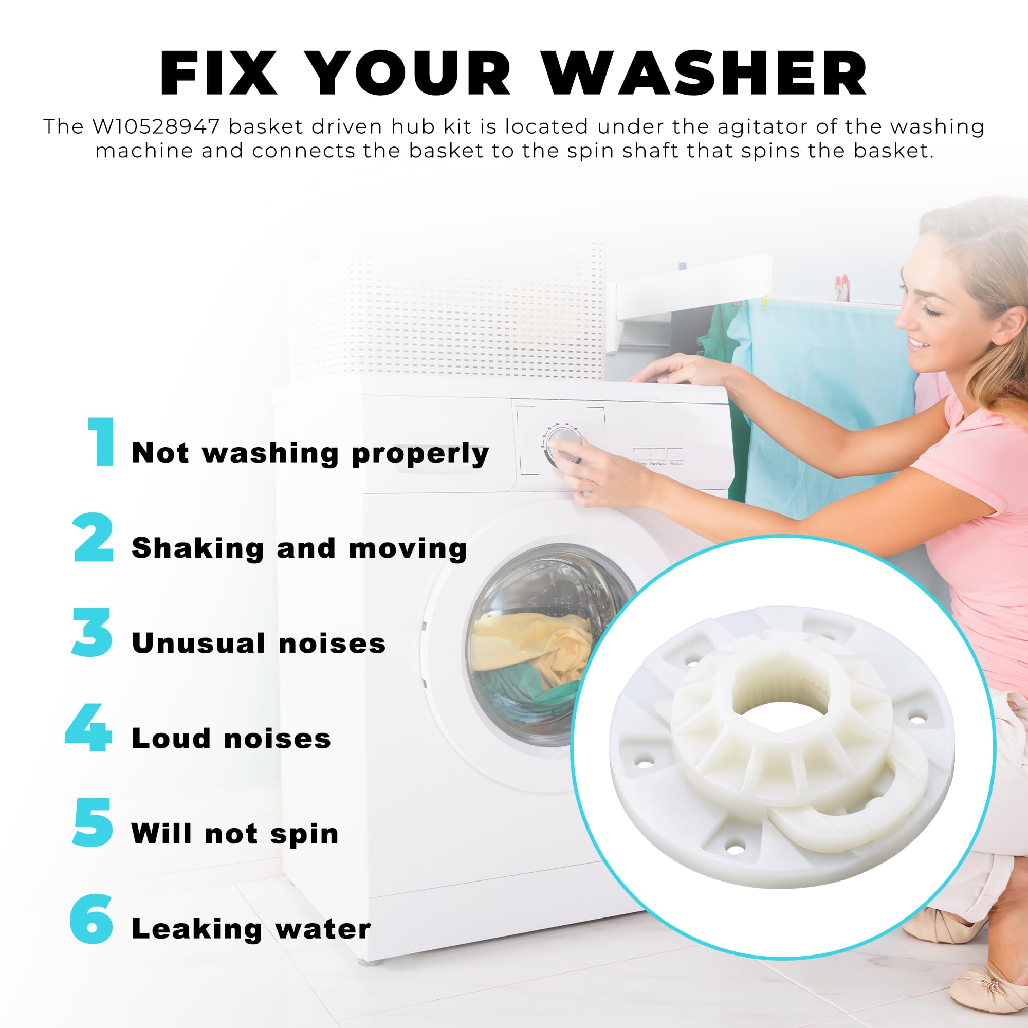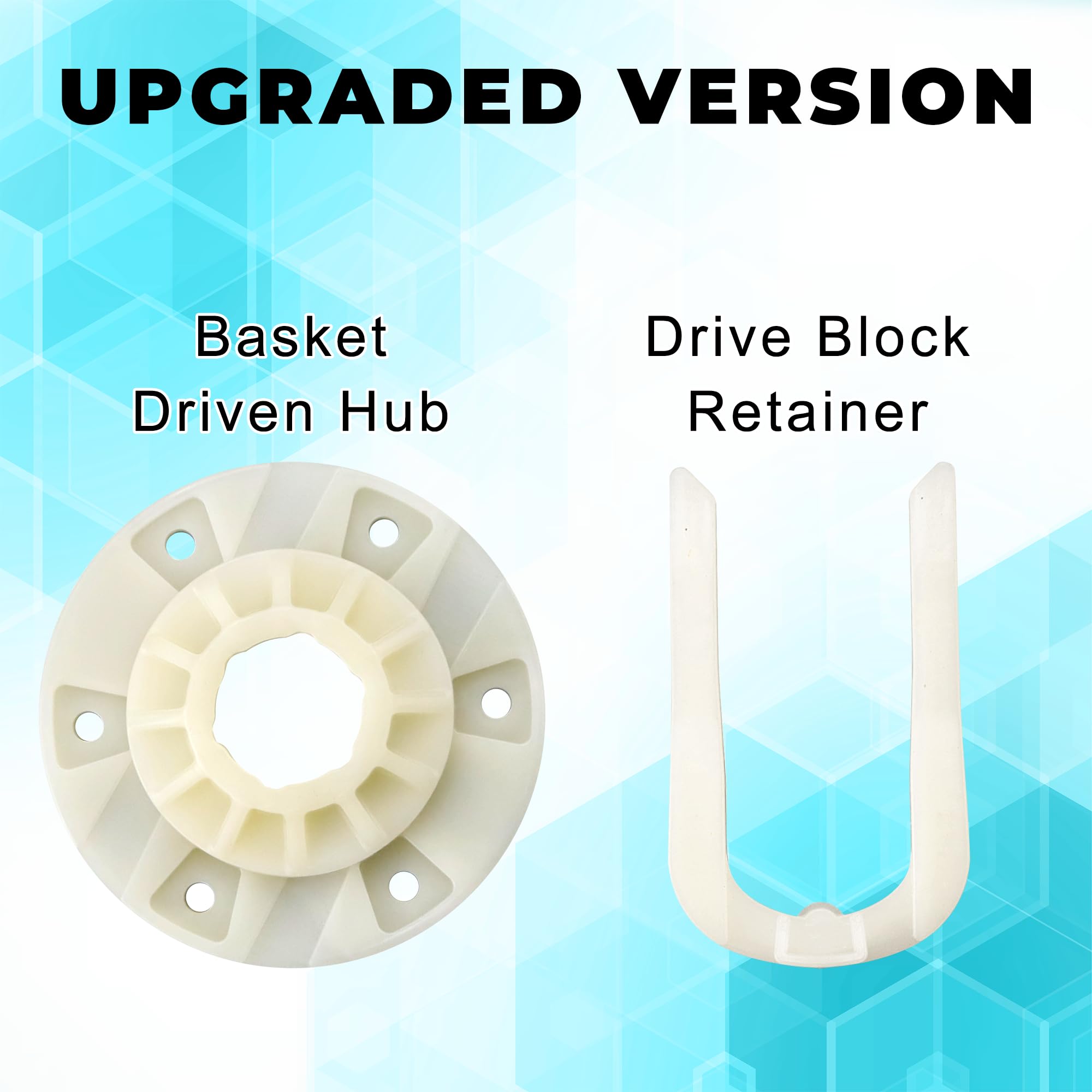 𝐔𝐩𝐠𝐫𝐚𝐝𝐞𝐝 𝐕𝐞𝐫𝐬𝐢𝐨𝐧: W10528947 Drive hub kit is made of premium quality material,, long-lasting components that meet OEM standards. Includes basket driven hub, drive block retainer, and instruction sheet. (Compared with the old version, the revised version is stronger and more durable),efficient performance,save your time and money