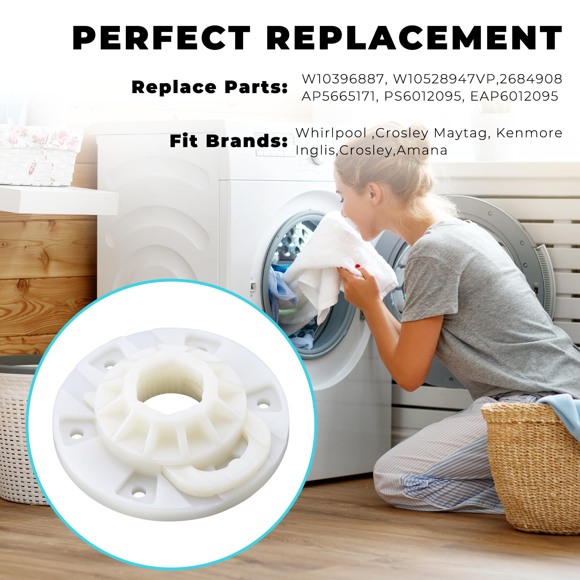𝐂𝐨𝐦𝐩𝐚𝐭𝐢𝐛𝐥𝐞 𝐁𝐫𝐚𝐧𝐝𝐬: W10528947 Drive hub kit could directly replaces W10396887, W10528947VP, 2684908, AP5665171, PS6012095, EAP6012095 and compatible with Whirlpool, Cro.sley, Maytag, Ken.more, In.glis, Cro.sley, A.mana